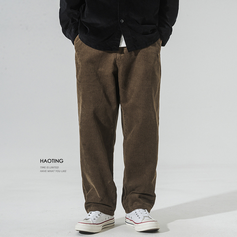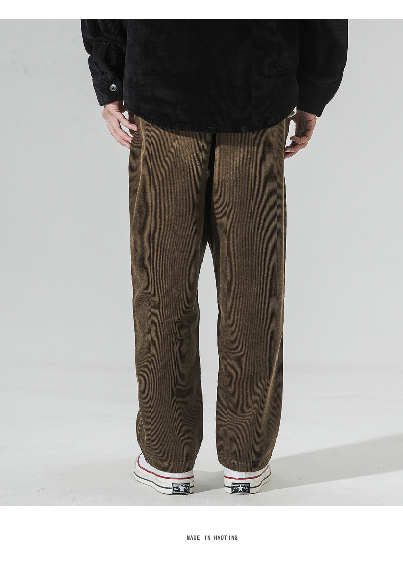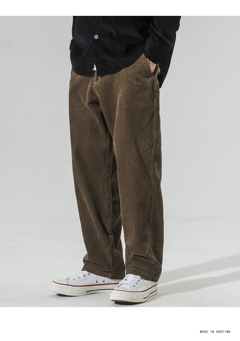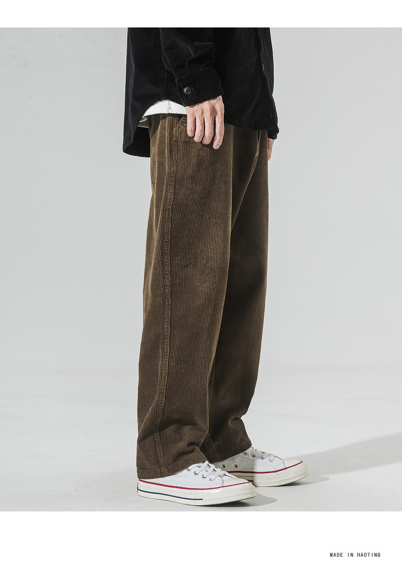 가을과 겨울 두꺼운 느슨한 스트레이트 코듀로이 캐주얼 바지 남자 올 매치 빈티지 코일 와이드 레그 바지스토어 가기