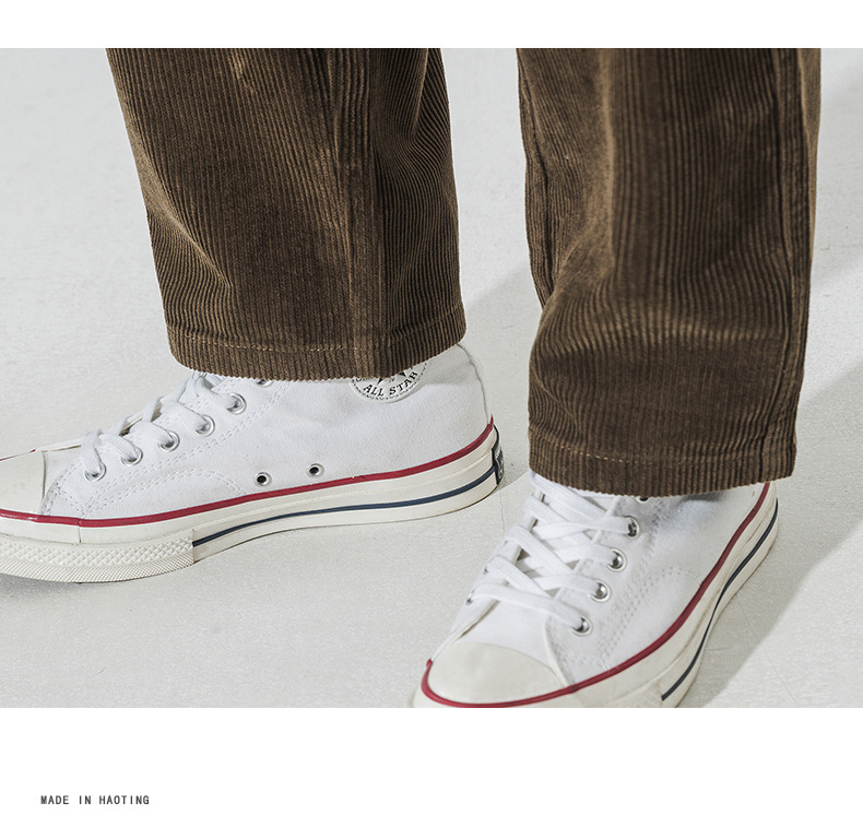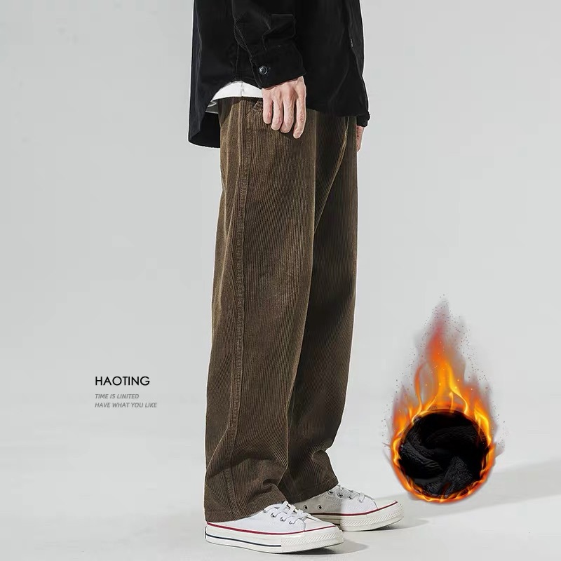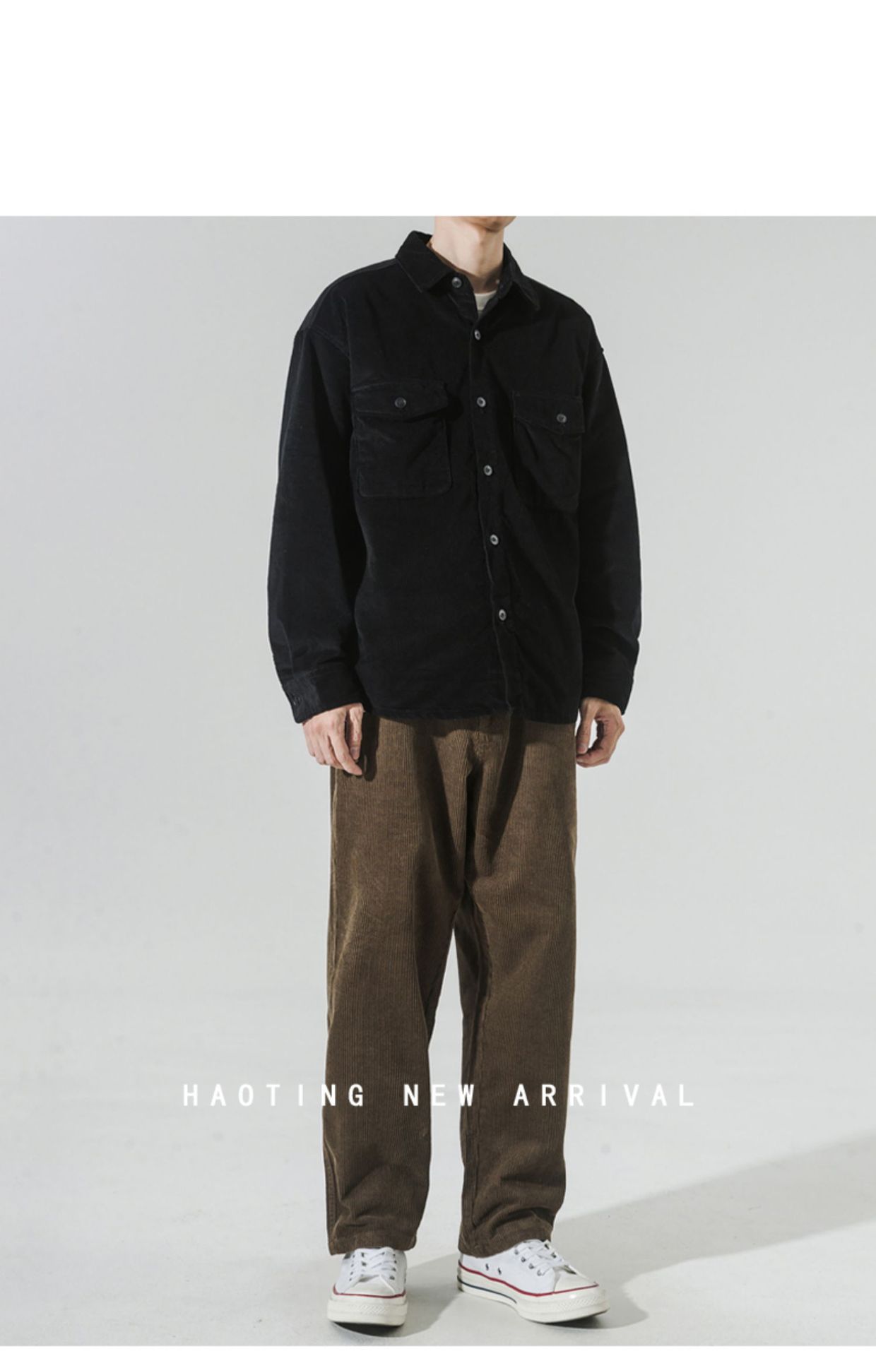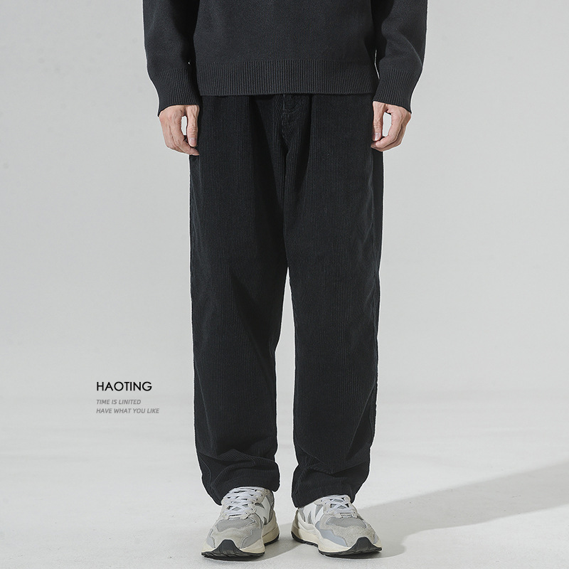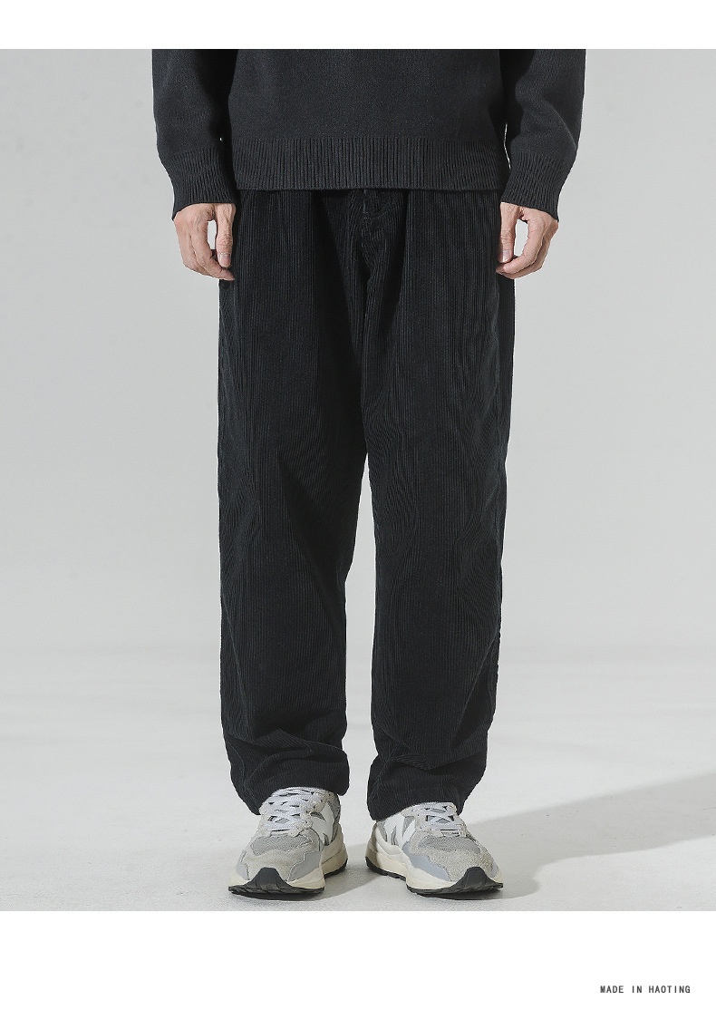 가을과 겨울 두꺼운 느슨한 스트레이트 코듀로이 캐주얼 바지 남자 올 매치 빈티지 코일 와이드 레그 바지스토어 가기