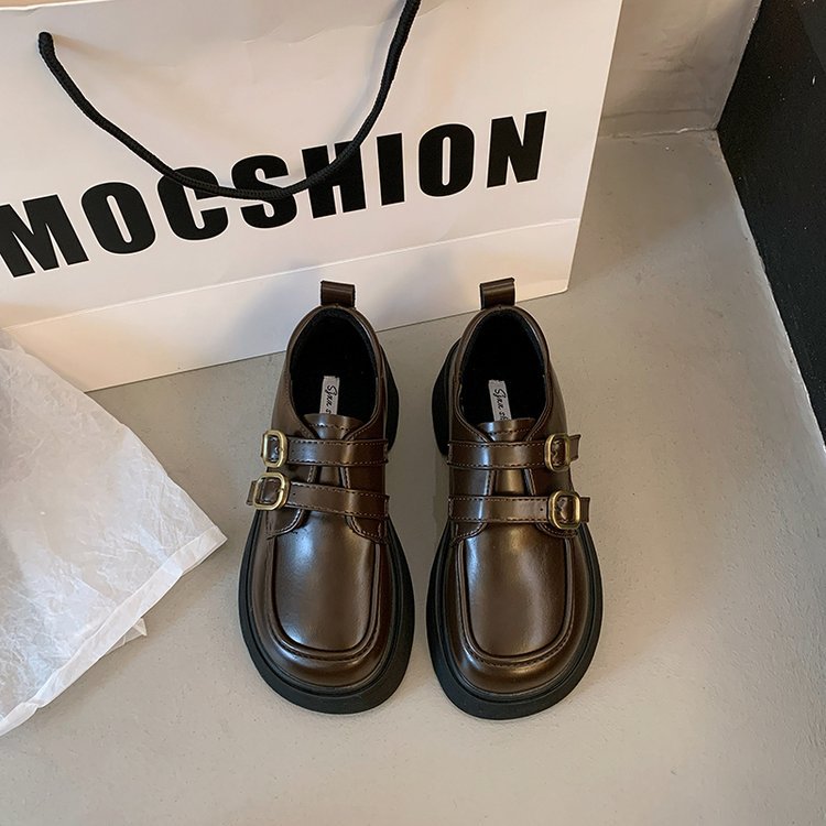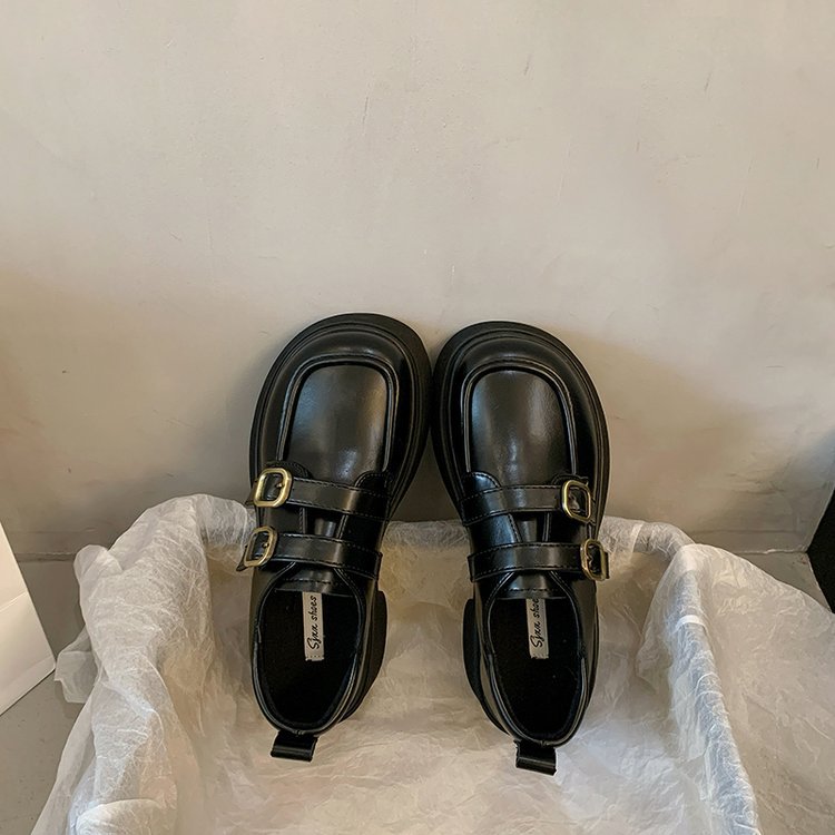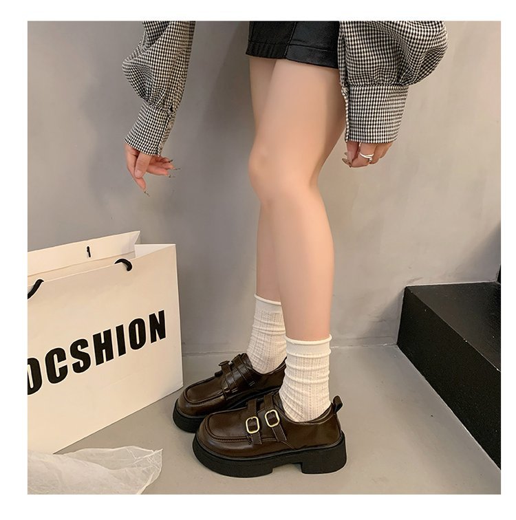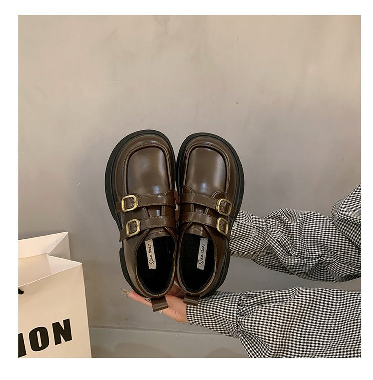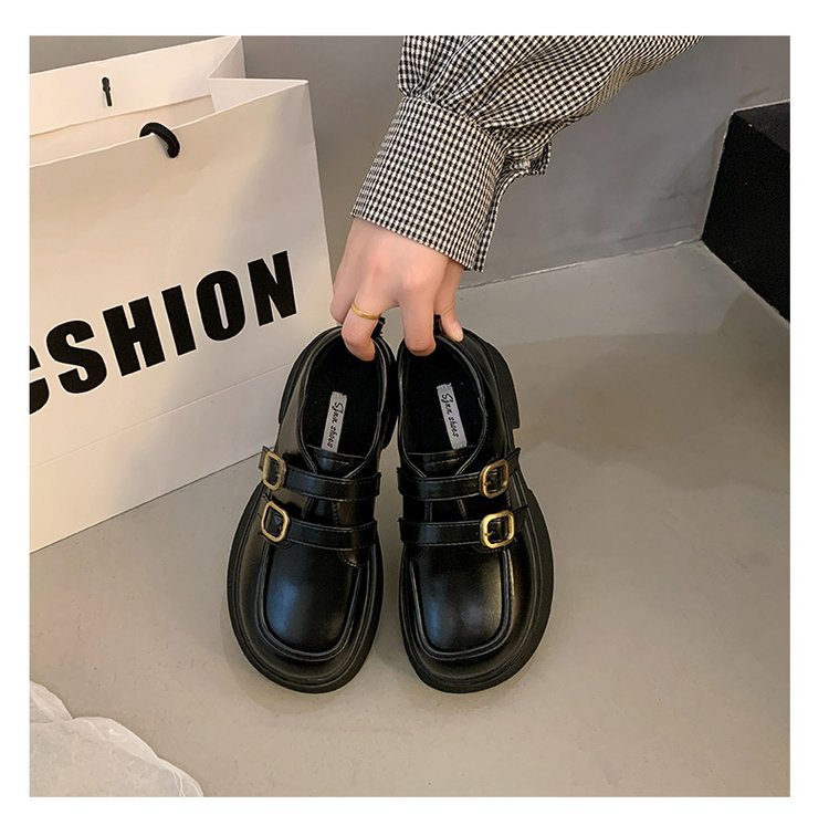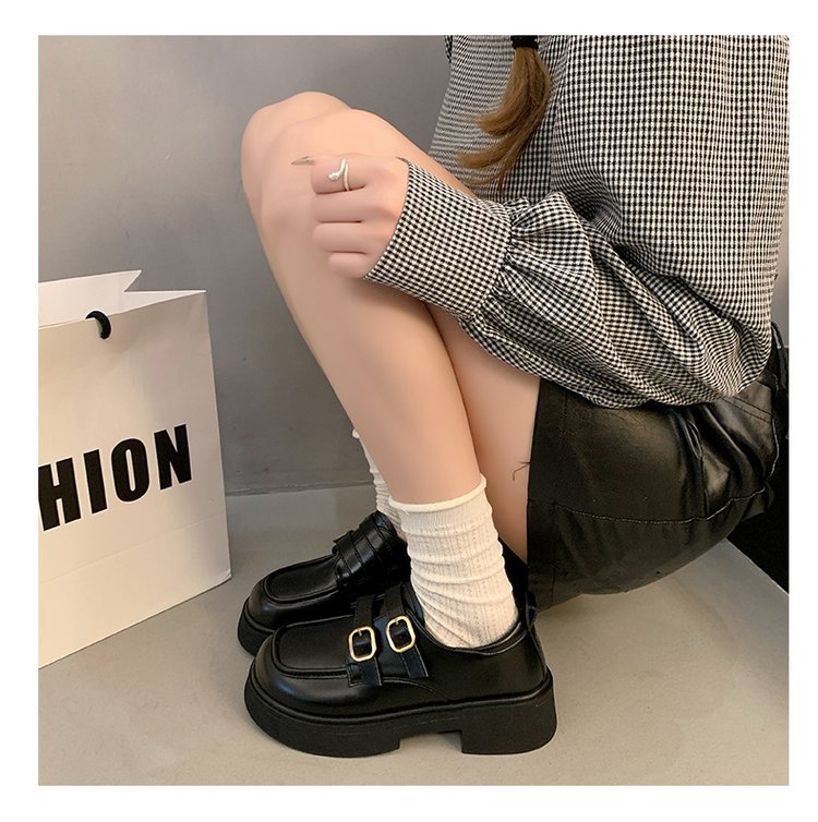 한국 스타일 싱글 신발 여성 2025 봄 새로운 복고풍 패션 JK 치마를 가진 두꺼운 밑바닥 작은 가죽 신발 여성