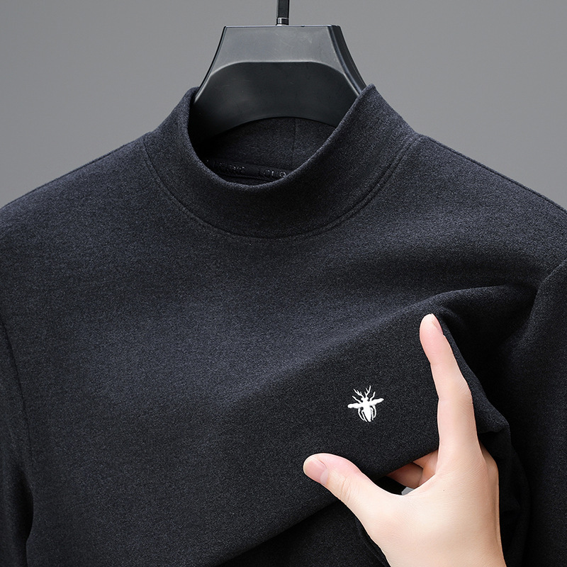 가을과 겨울 새로운 남성베이스 셔츠 젊고 중년 패션 한국식 하프 하이 칼라 양털 긴팔 티셔츠 남성용 스웨터