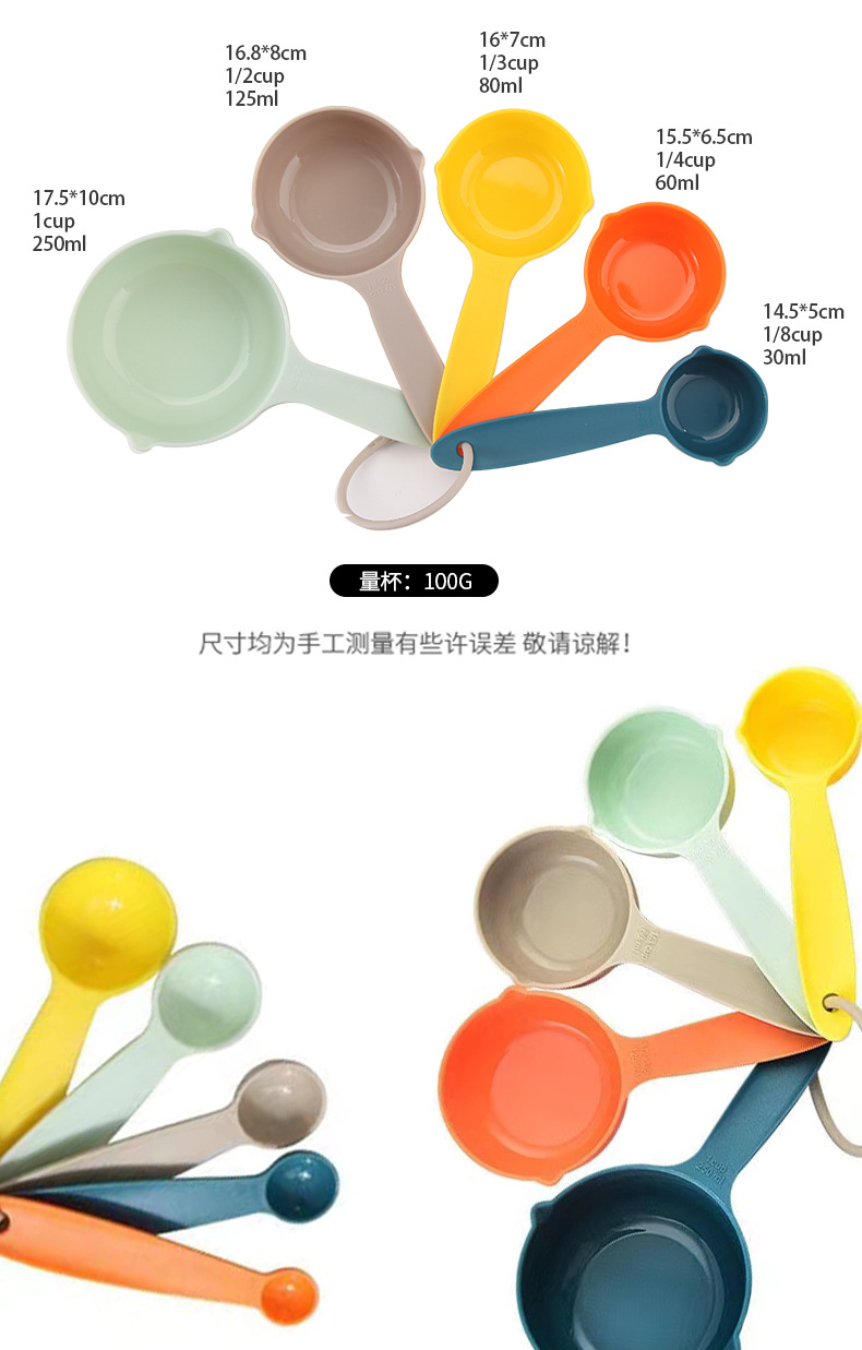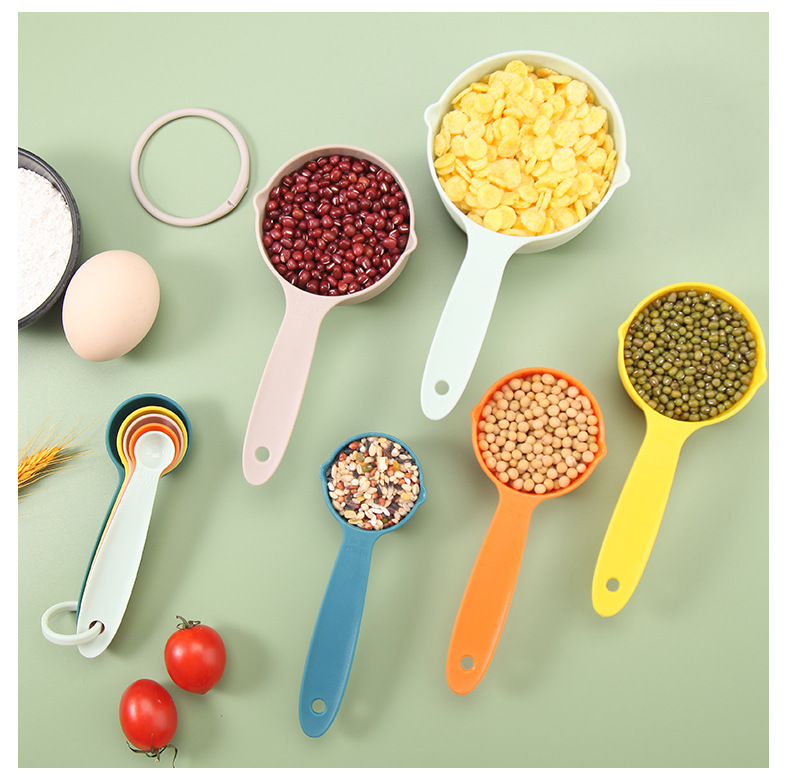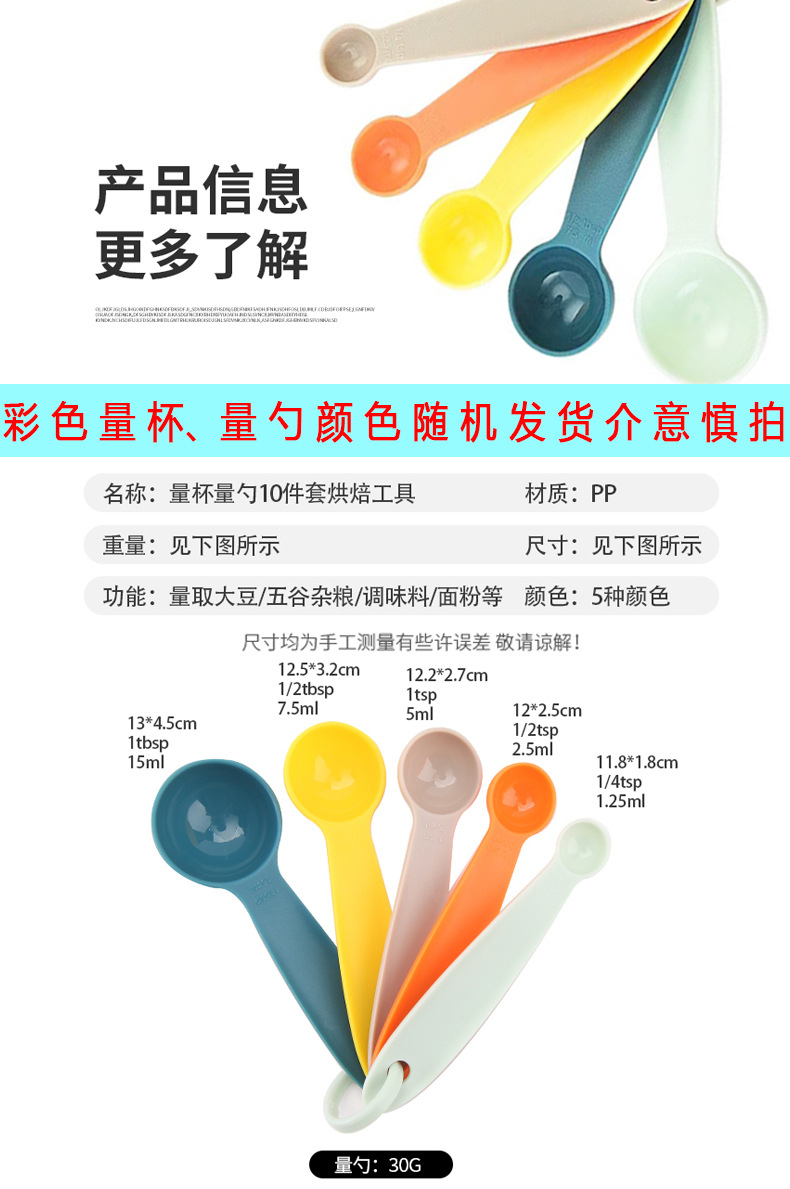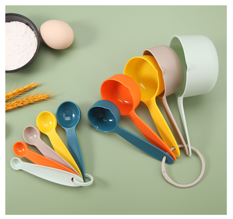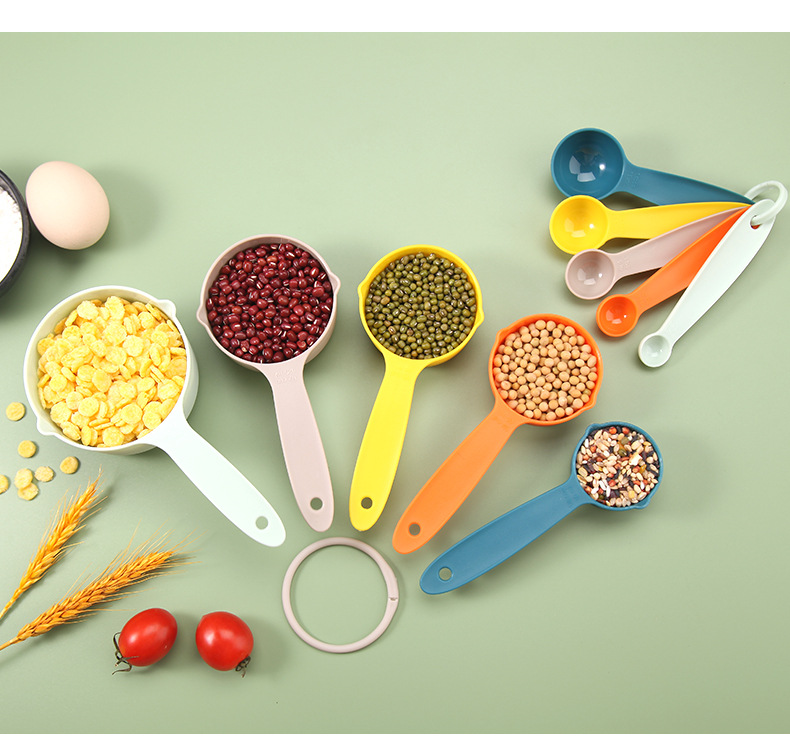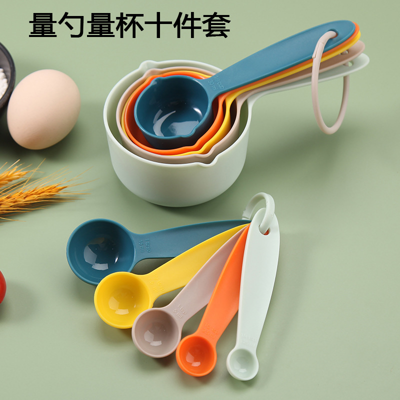 공장 직접 재고 베이킹 도구 플라스틱 측정 숟가락 측정 컵 10 개 세트 스케일 측정 컵 DIY