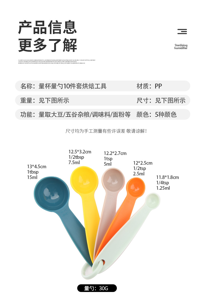공장 직접 재고 베이킹 도구 플라스틱 측정 숟가락 측정 컵 10 개 세트 스케일 측정 컵 DIY스토어 가기