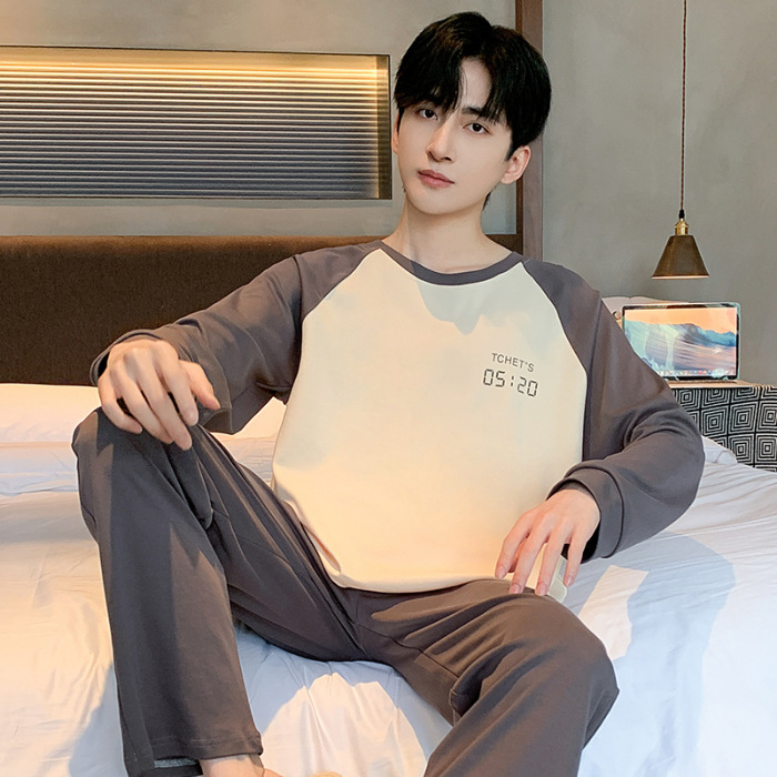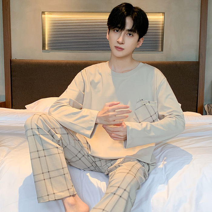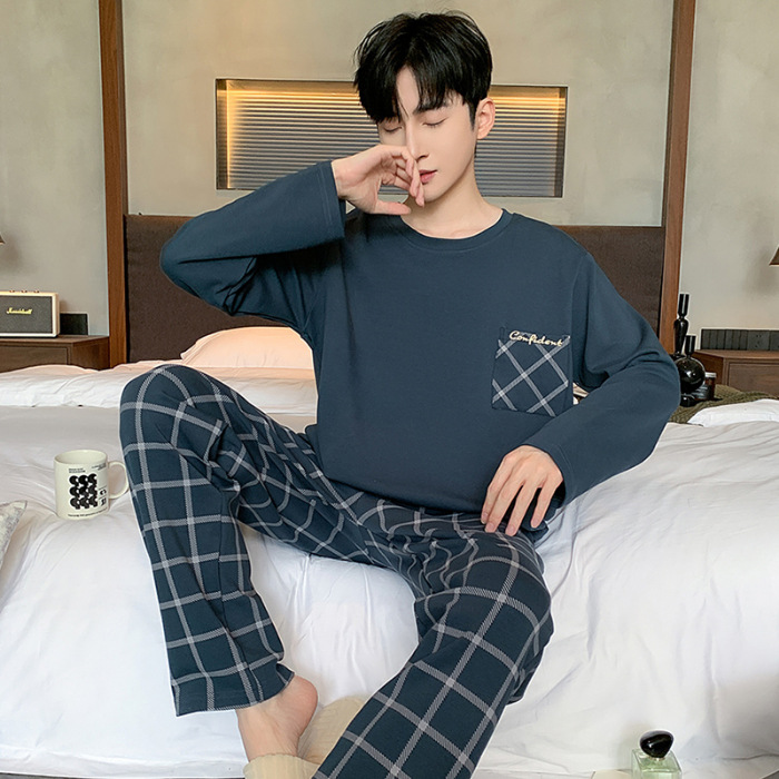 대외 무역 봄 뉴 코튼 파자마 남자 세트 홈 의류 100 청춘 가을과 겨울 면 두꺼운 풀오버 남성스토어 가기