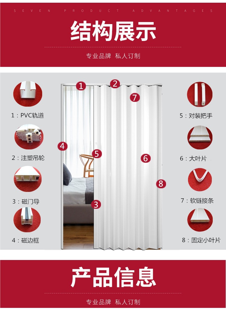 Pvc 접이식 문 실내 침실 욕실 주방 문 발코니 거실 상점 파티션 슬라이딩 셔터 문