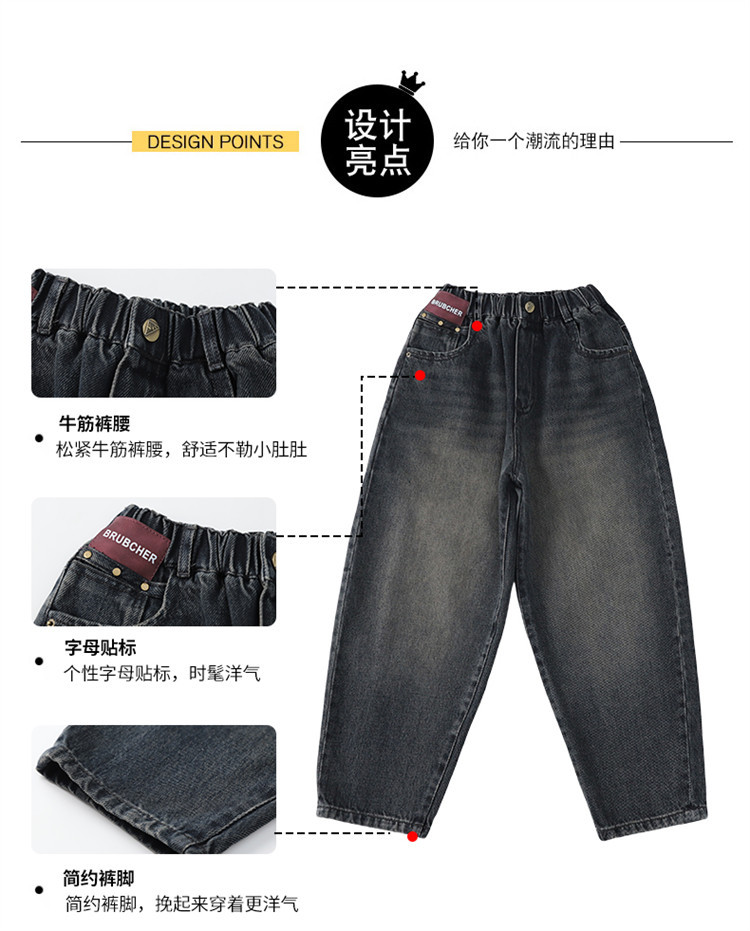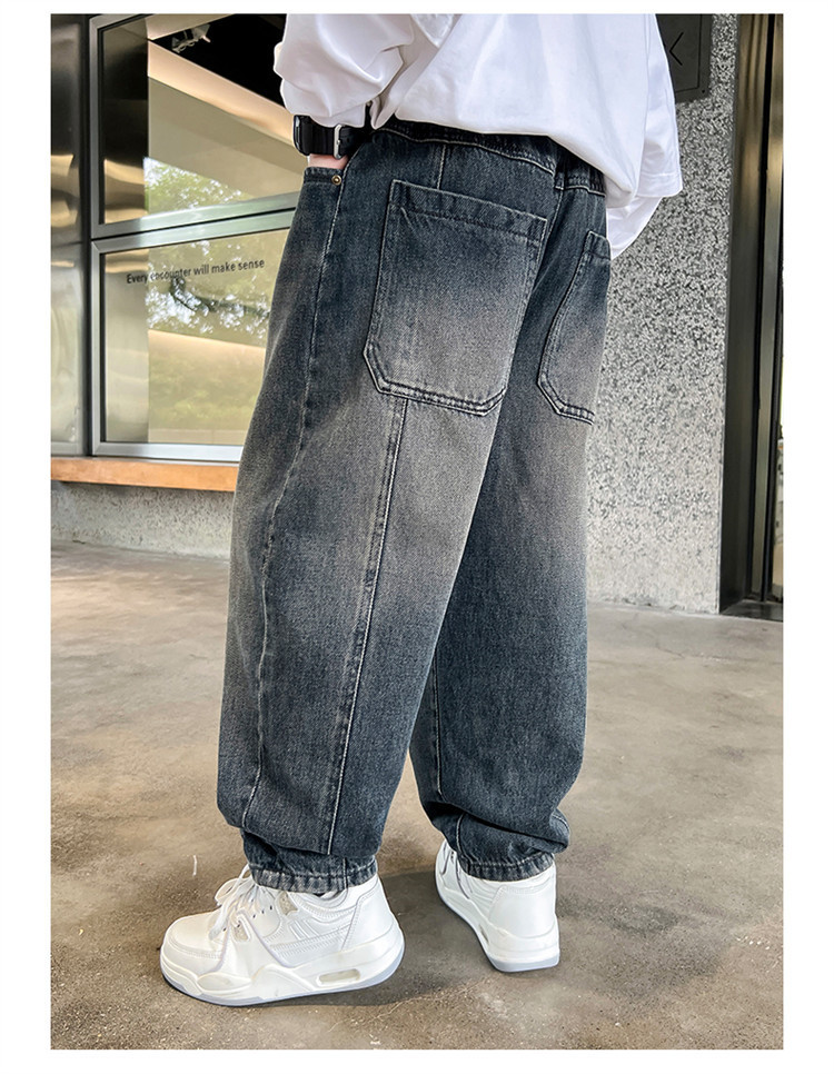 소년 봄과 가을 청바지 유행 느슨한 한국 스타일 캐주얼 바지 큰 아이 유행 스트레치 스트레이트 바지