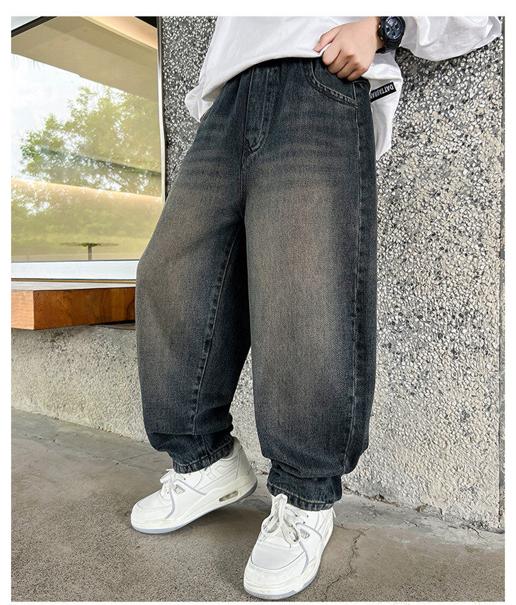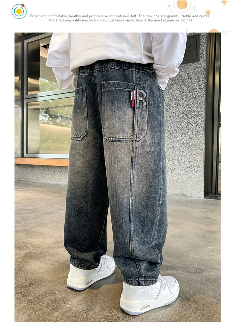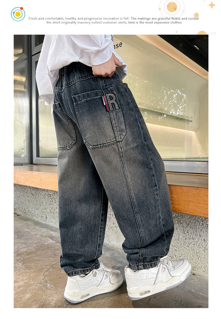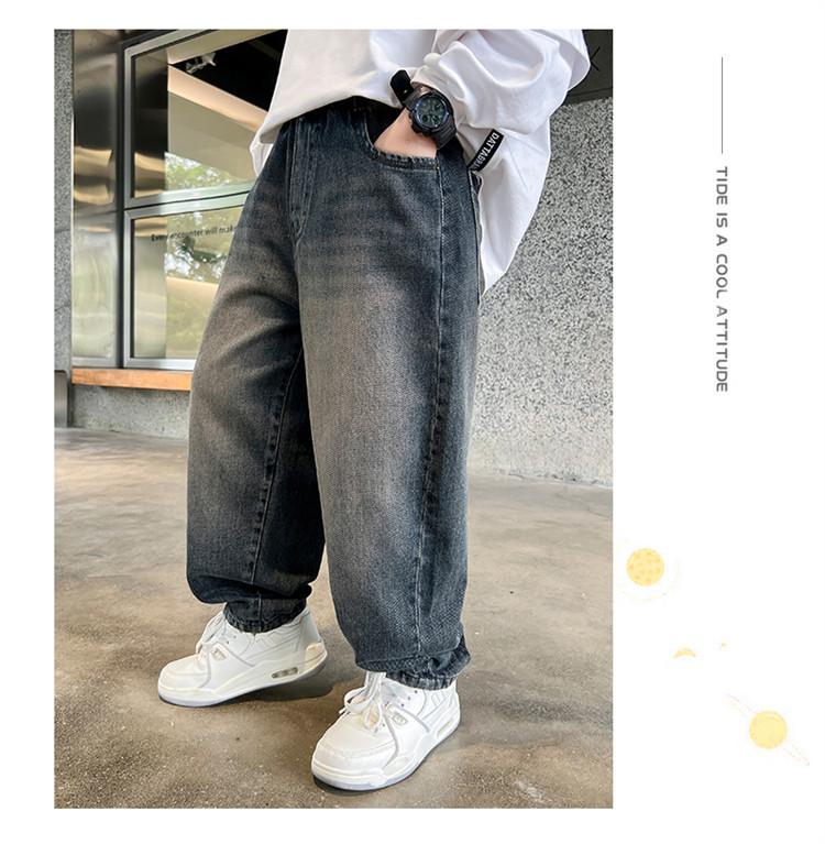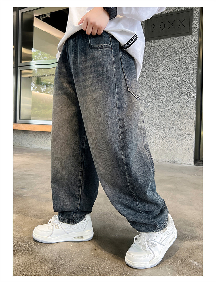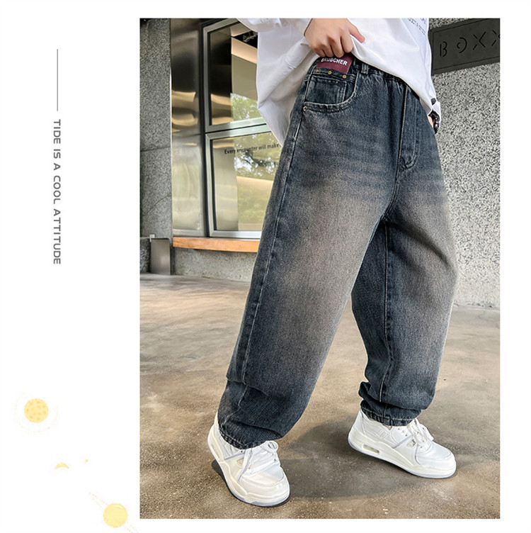 소년 봄과 가을 청바지 유행 느슨한 한국 스타일 캐주얼 바지 큰 아이 유행 스트레치 스트레이트 바지스토어 가기