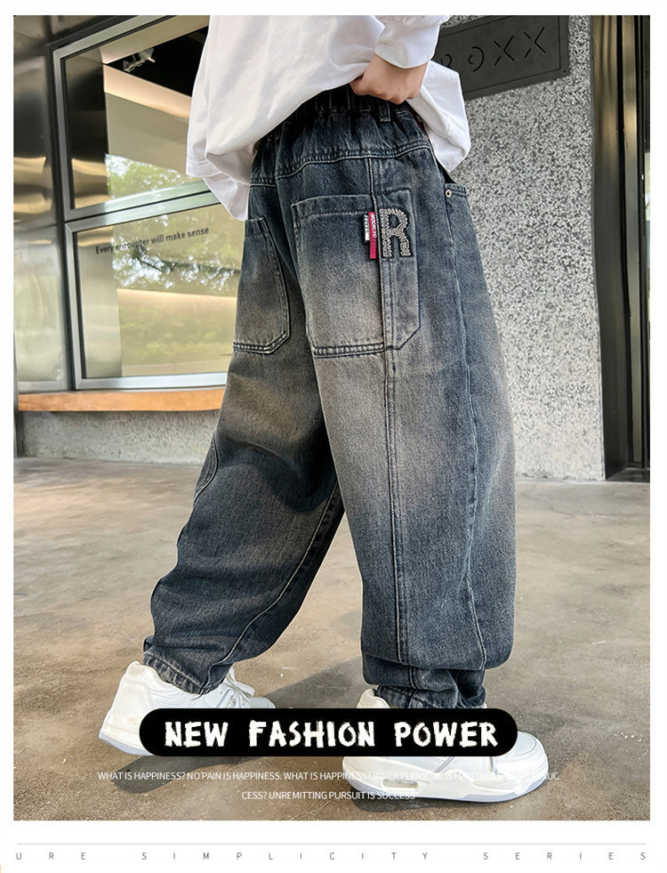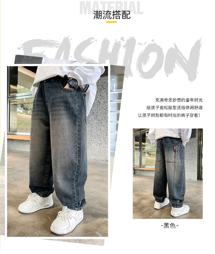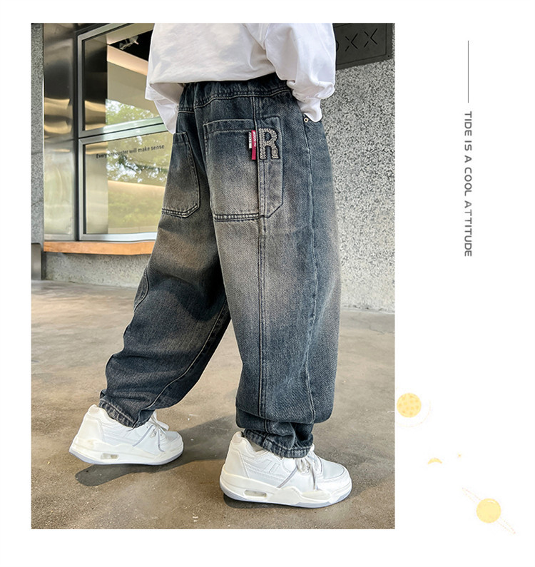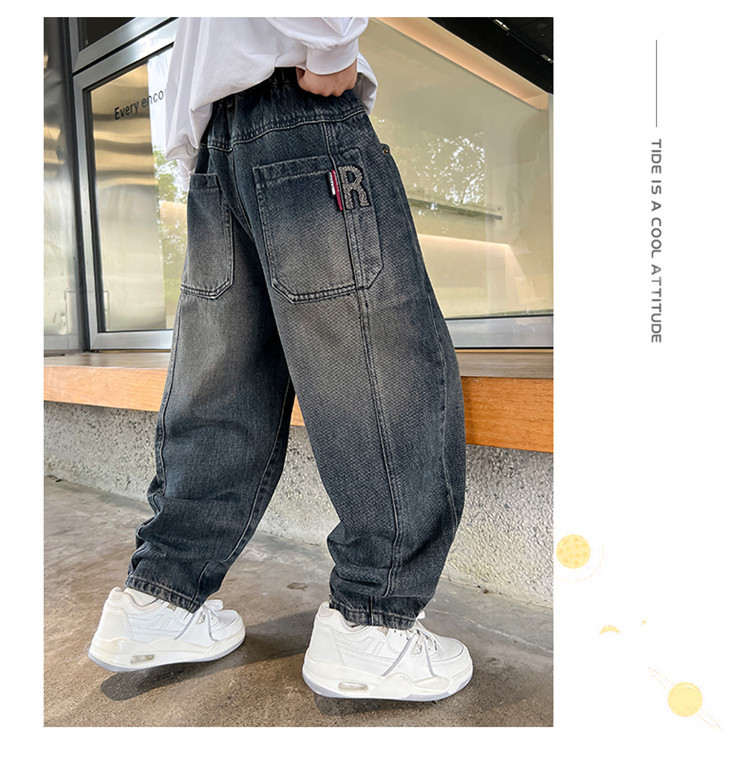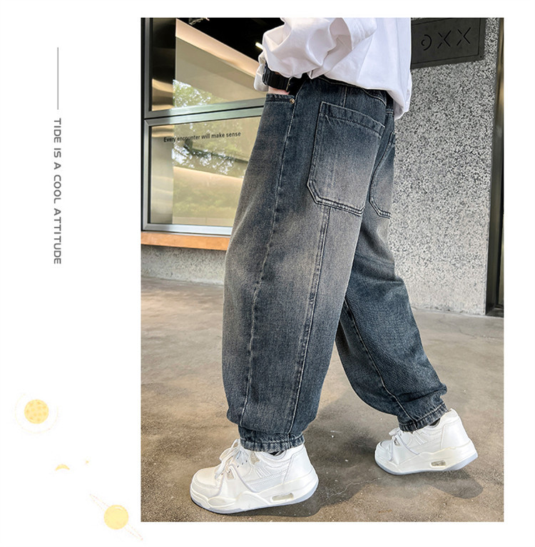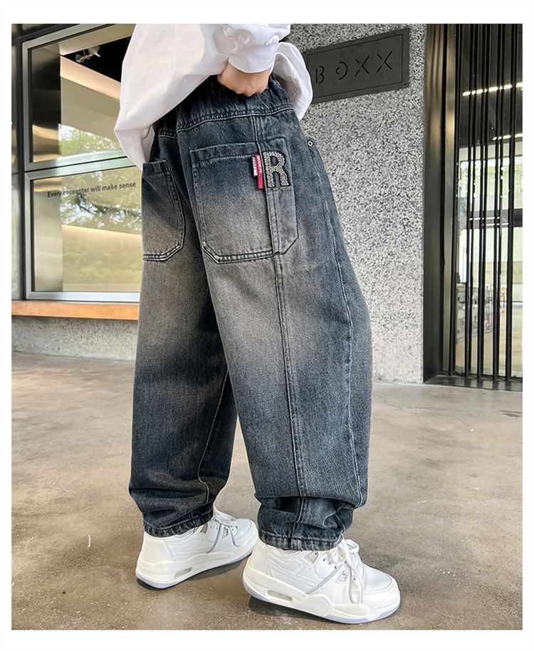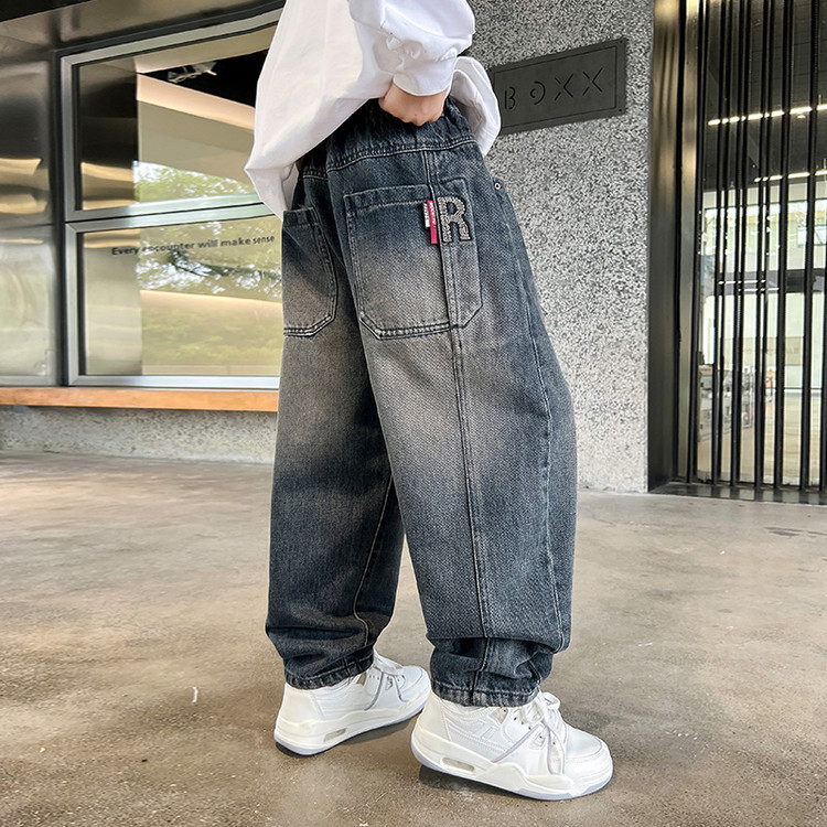 소년 봄과 가을 청바지 유행 느슨한 한국 스타일 캐주얼 바지 큰 아이 유행 스트레치 스트레이트 바지스토어 가기