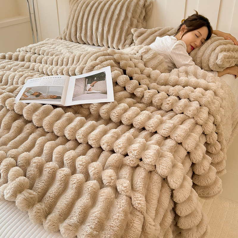 국경 간 대외 무역 모방 토끼 모피 담요 목도리 담요 낮잠 담요 커버 담요 사계절 두꺼운 줄무늬 컷 양털