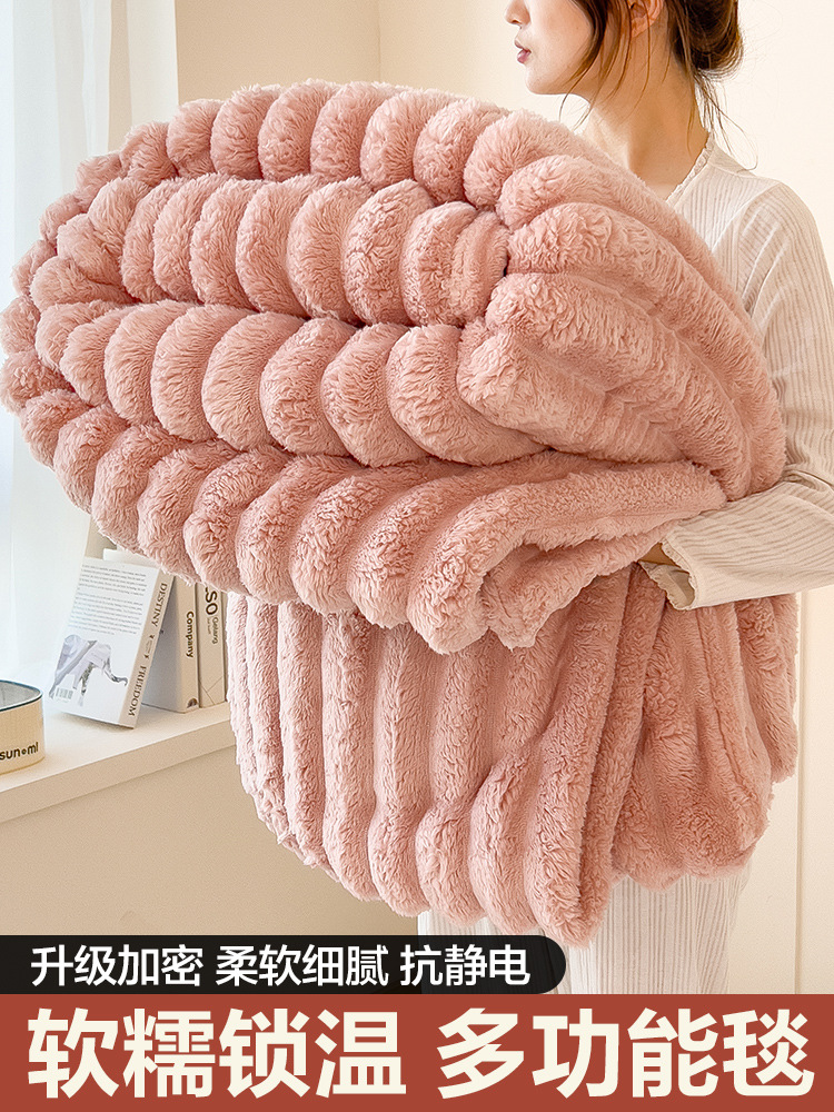 국경 간 대외 무역 모방 토끼 모피 담요 목도리 담요 낮잠 담요 커버 담요 사계절 두꺼운 줄무늬 컷 양털스토어 가기