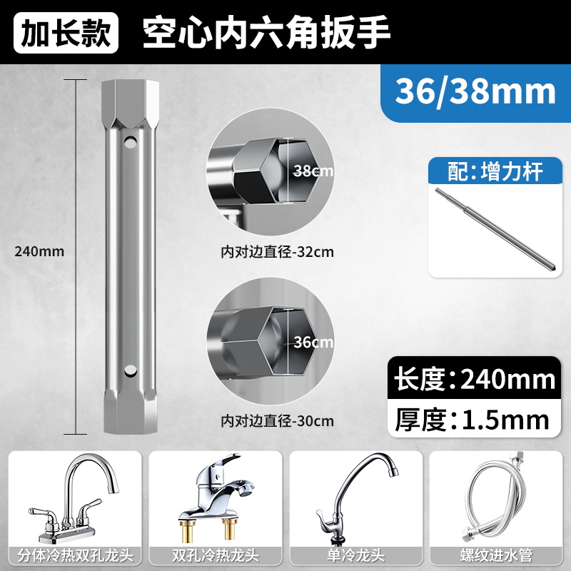 수도꼭지 설치 및 제거 육각형 소켓 렌치 고정 너트 너트 작은 공간 유지 보수 얇은 벽 렌치스토어 가기