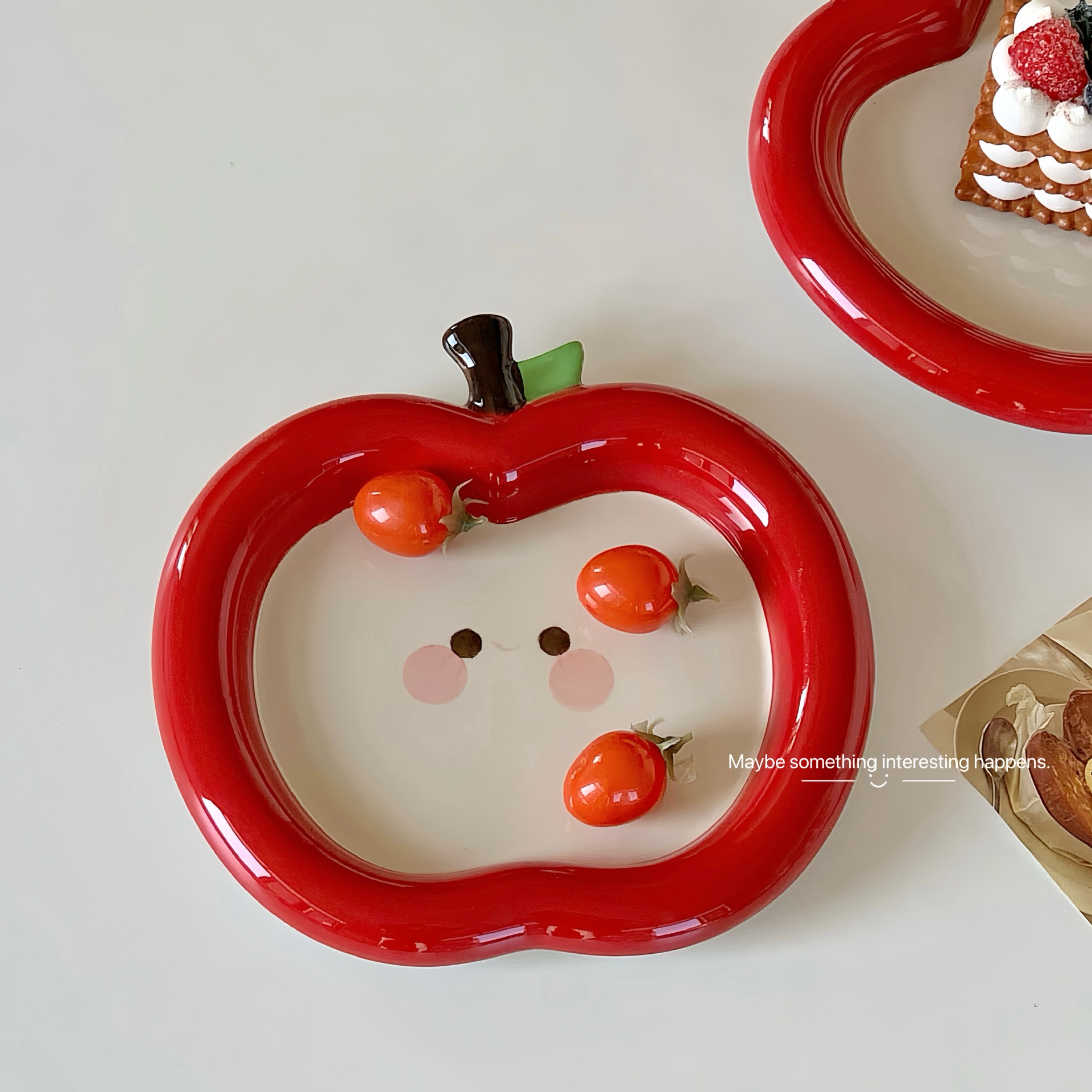 인터넷 연예인 애플 플레이트, 높은 색상 가치 귀여운 세라믹 쥬얼리 스토리지 플레이트 아로마 테라피 트레이 고급 센스 디저트 플레이트스토어 가기