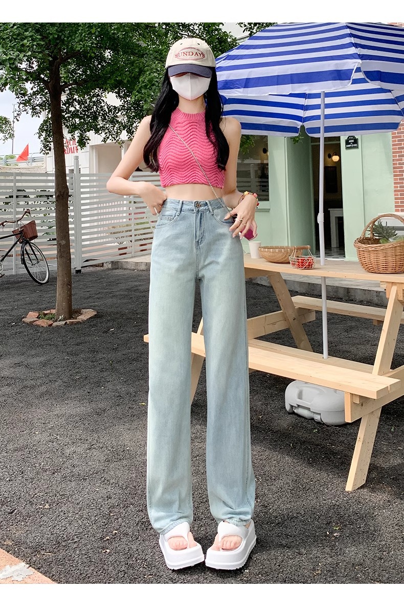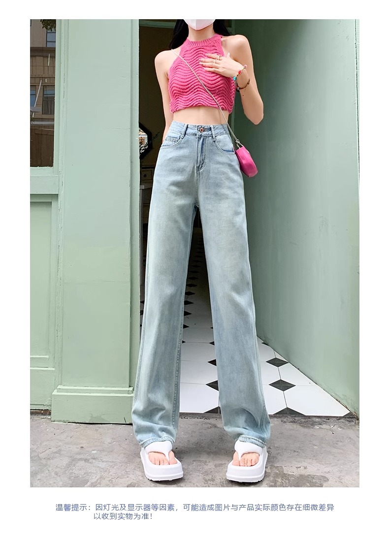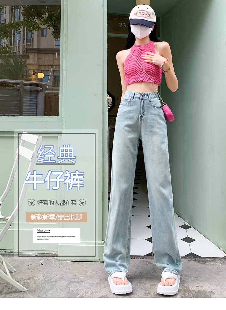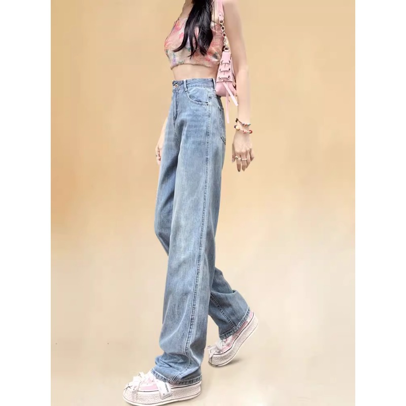 밝은 색 스트레이트 다리 청바지 여성 봄 2025 새로운 플러스 사이즈 통통녀 높은 허리 느슨한 슬리밍 좁은 넓은 다리 바지스토어 가기