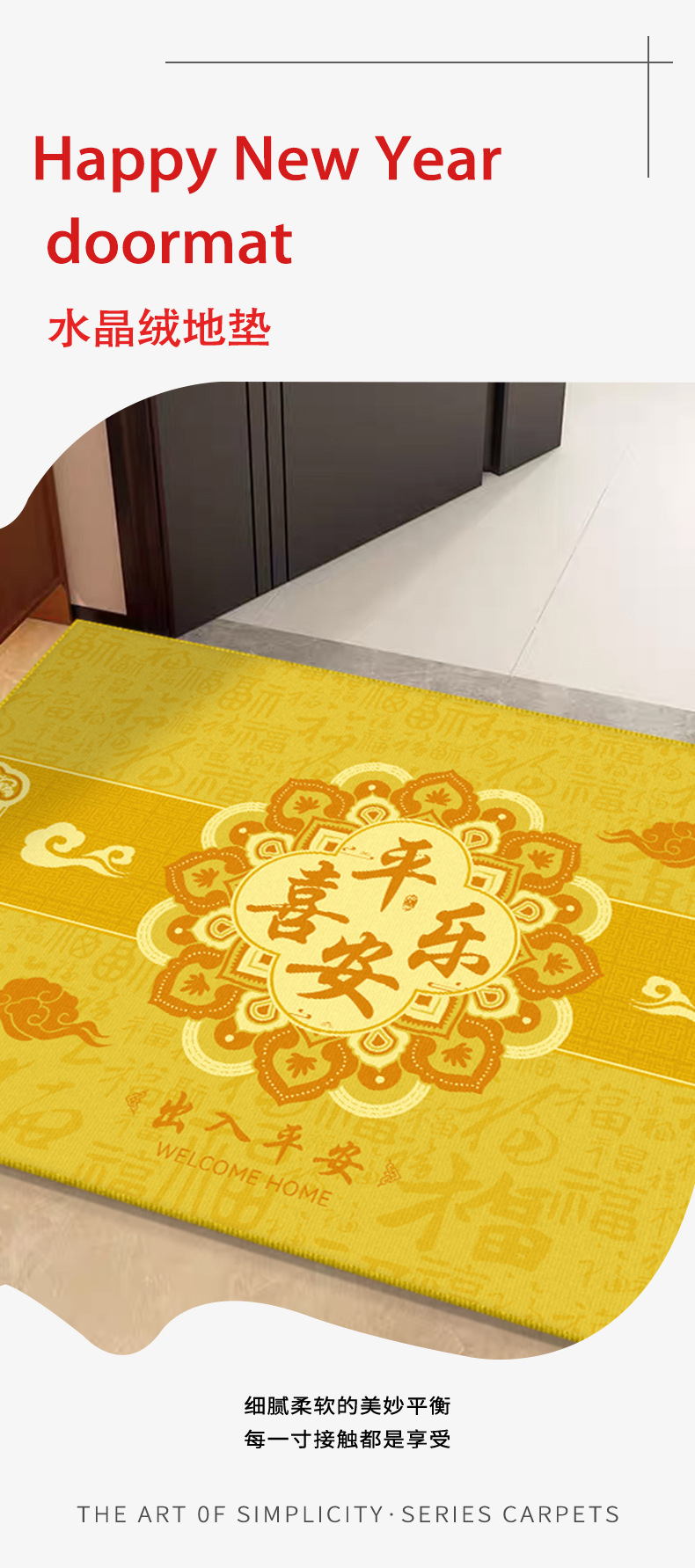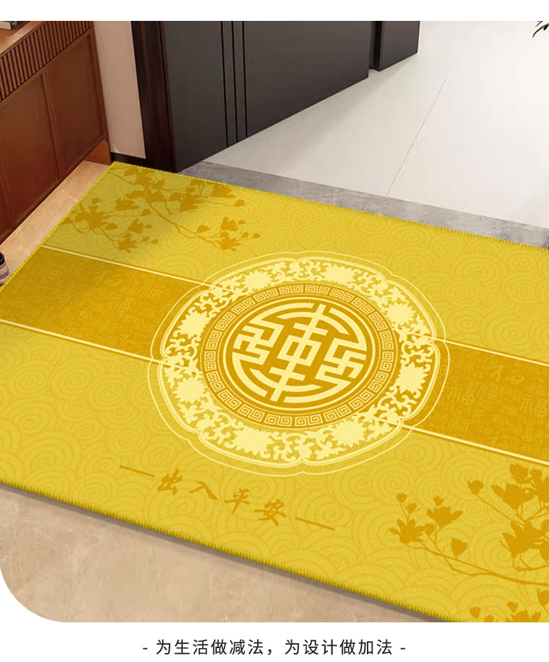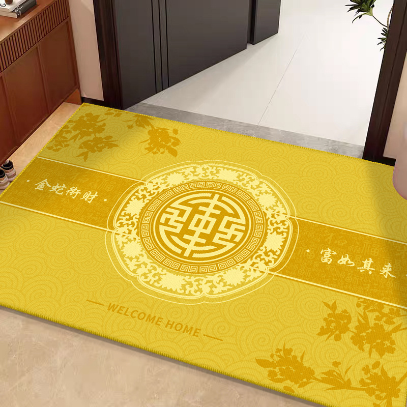 바닥 매트 입구 먼지 방지 크리스탈 벨벳 바닥 매트 중국 스타일 노란색 입구 발 매트 입구 쉬운 비 슬립 도어 매트