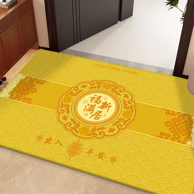 바닥 매트 입구 먼지 방지 크리스탈 벨벳 바닥 매트 중국 스타일 노란색 입구 발 매트 입구 쉬운 비 슬립 도어 매트스토어 가기