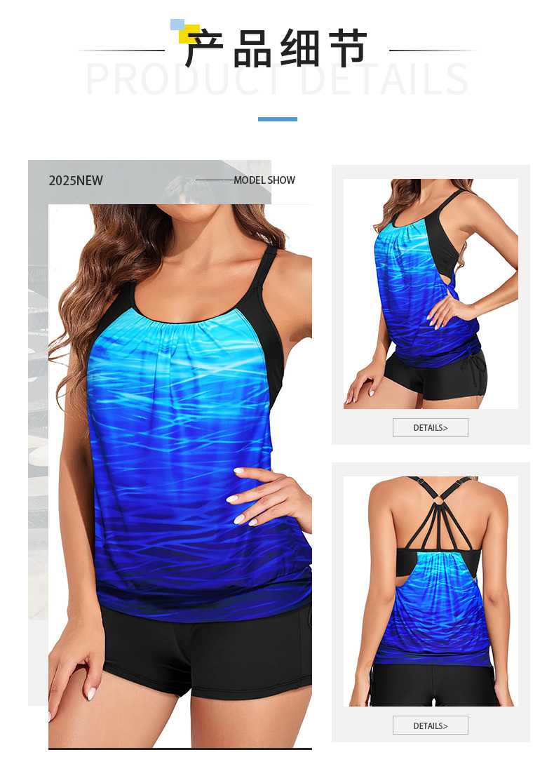 2025 국경 새 수영복 유럽과 미국의 프린트 비치 보수적 복서 브리프 커버 배꼽 아마존 탄키니 수영복스토어 가기