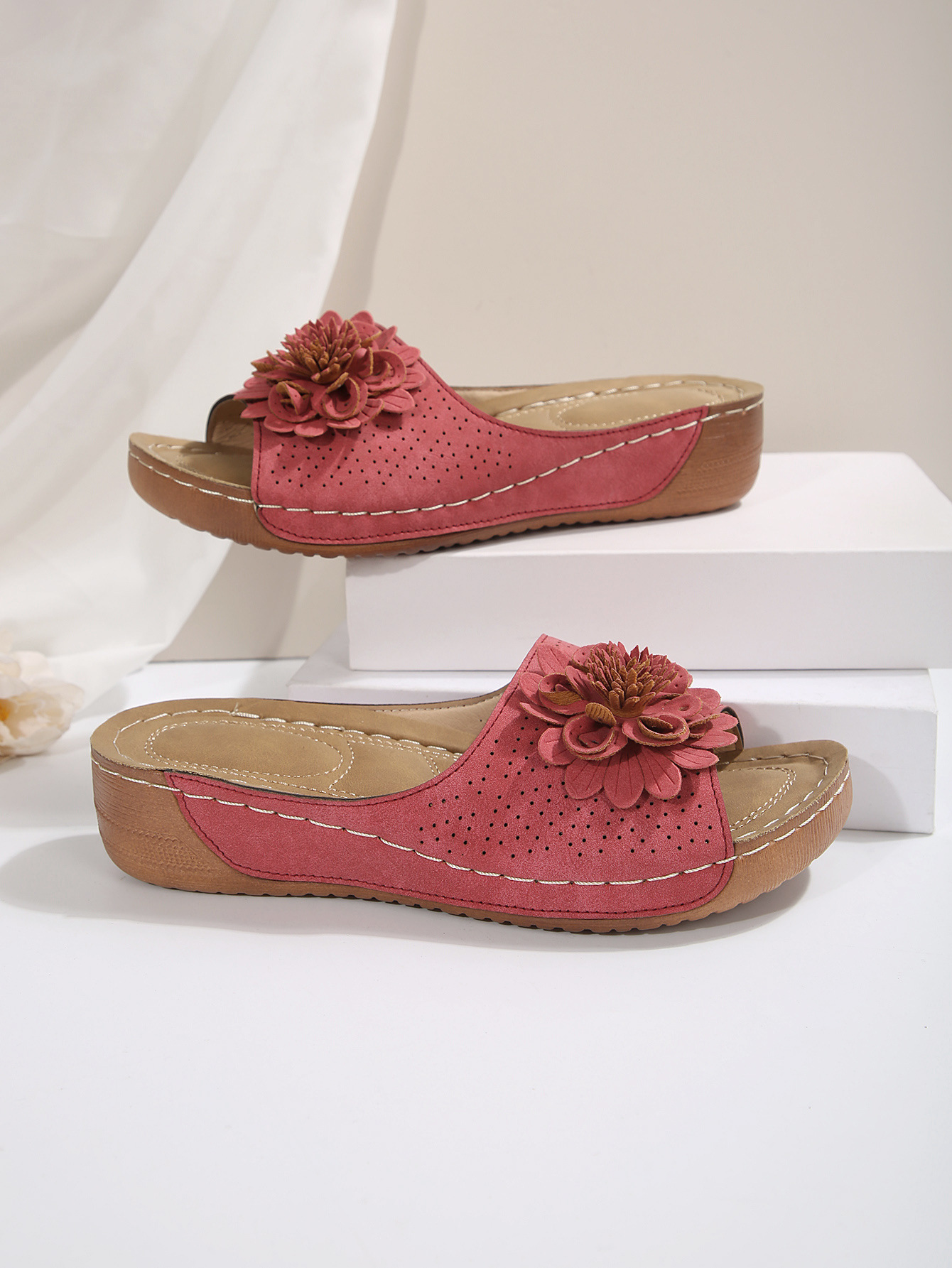 대외 무역 플러스 사이즈 여성 신발 2025 봄과 여름 새로운 아마존 국경 하나의 꽃 오픈 토 슬리퍼 여성의 유럽 및 미국 샌들