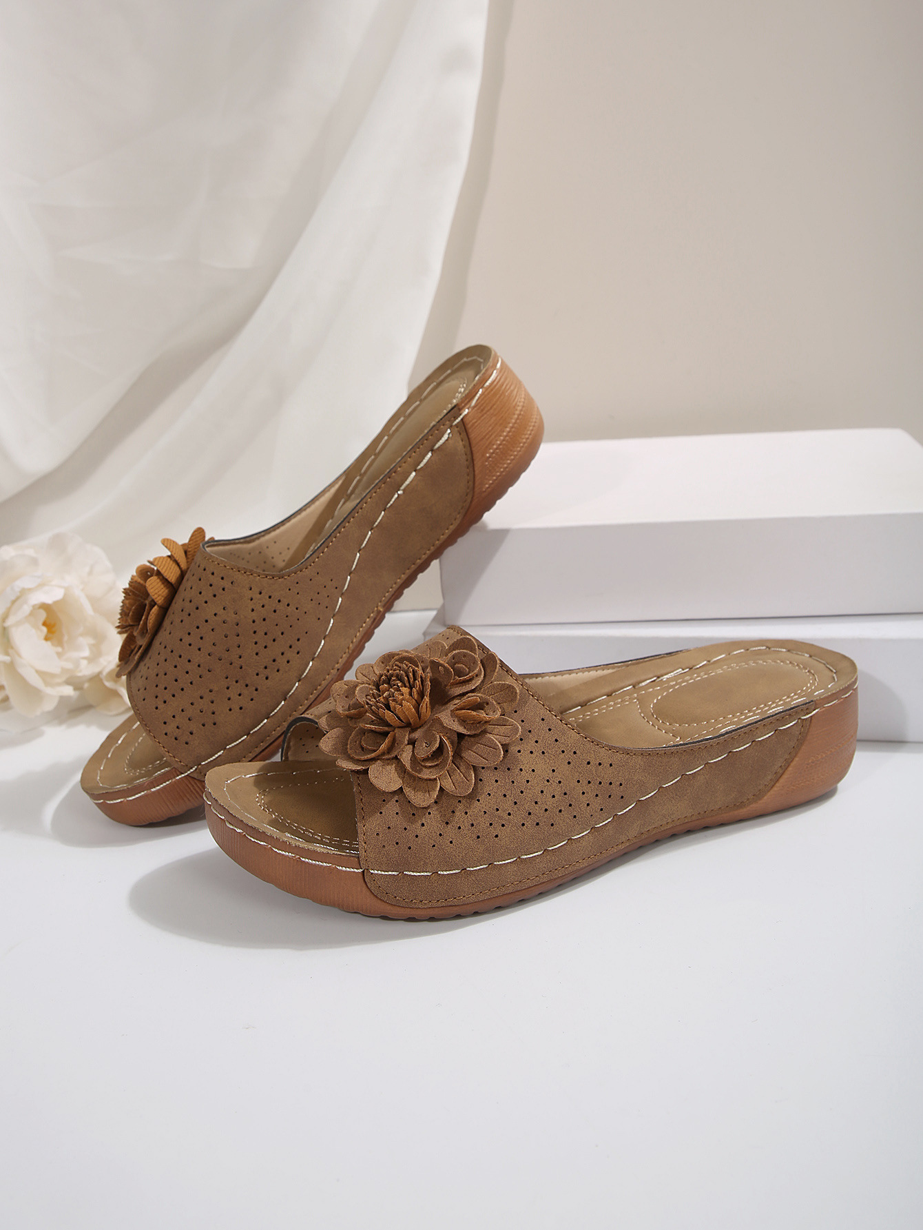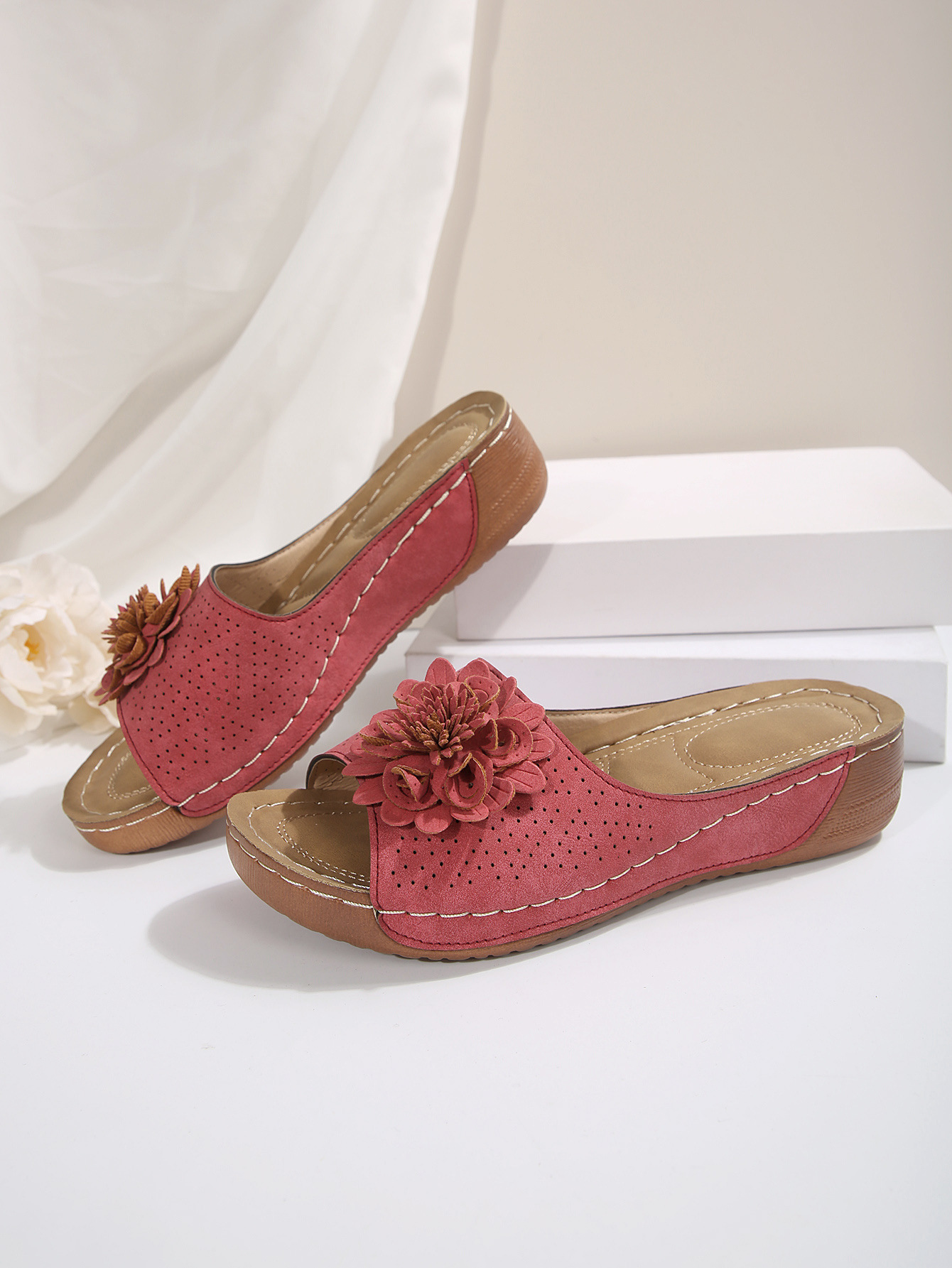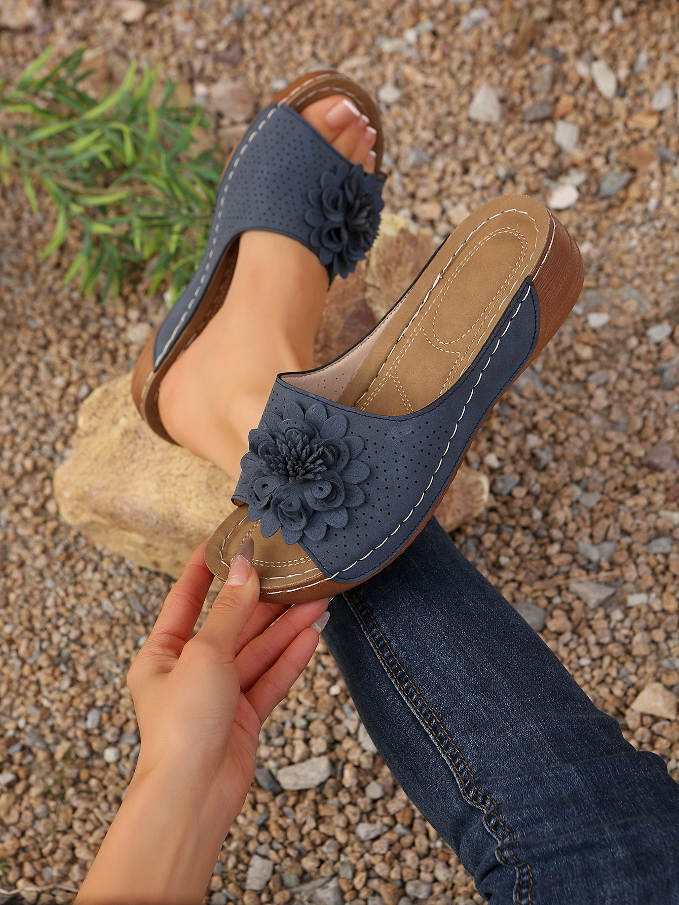 대외 무역 플러스 사이즈 여성 신발 2025 봄과 여름 새로운 아마존 국경 하나의 꽃 오픈 토 슬리퍼 여성의 유럽 및 미국 샌들스토어 가기