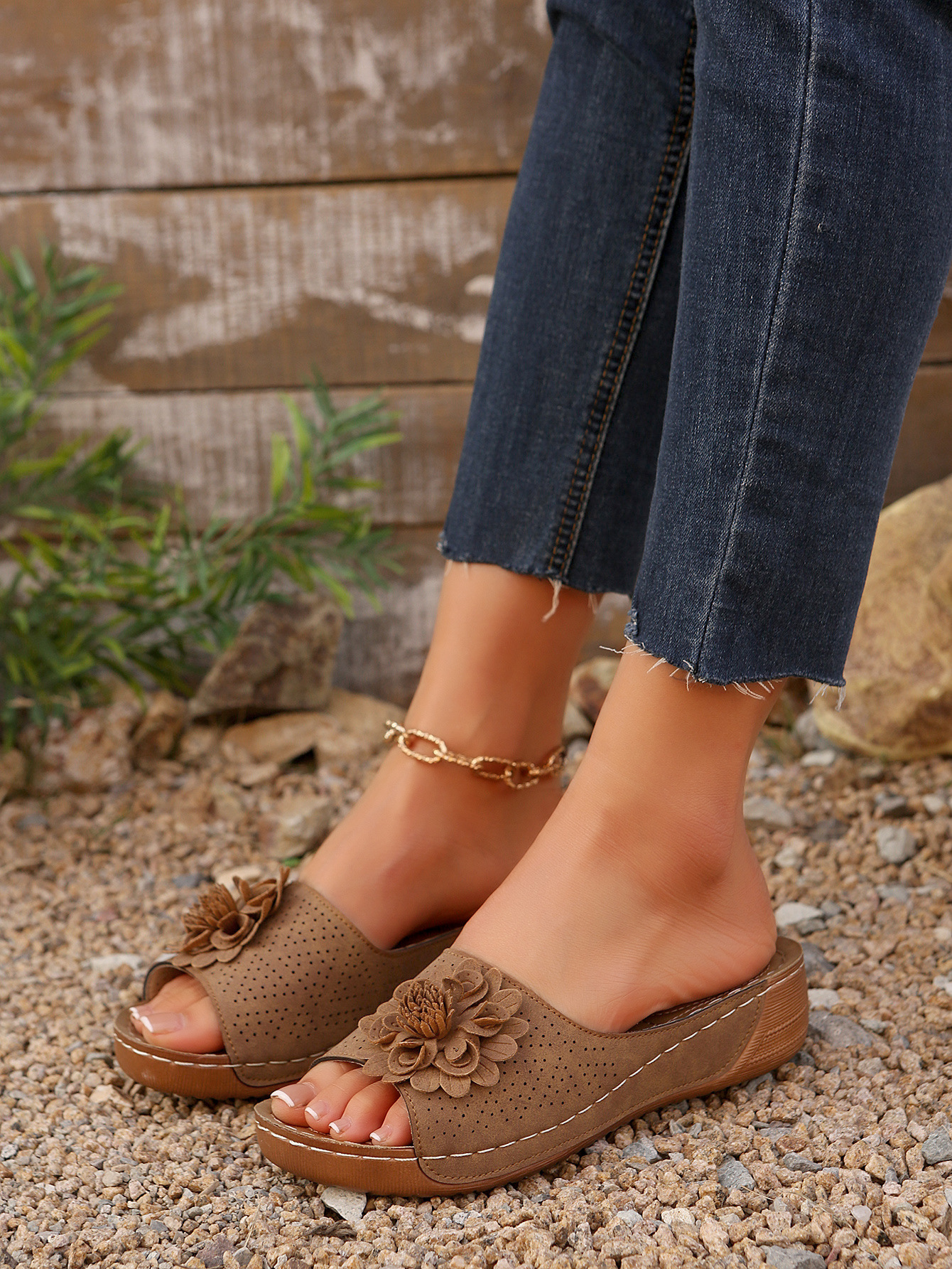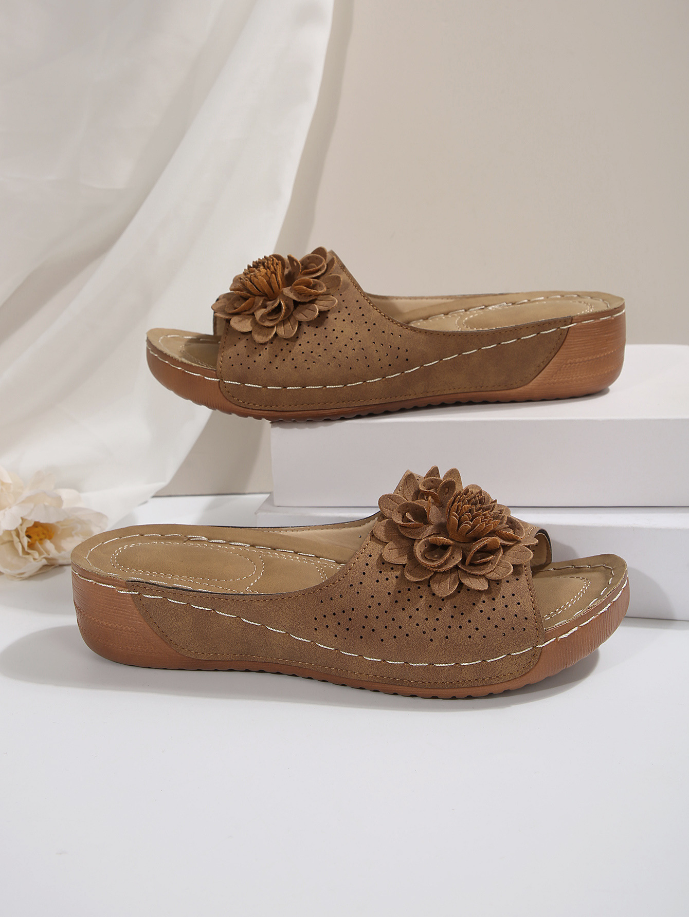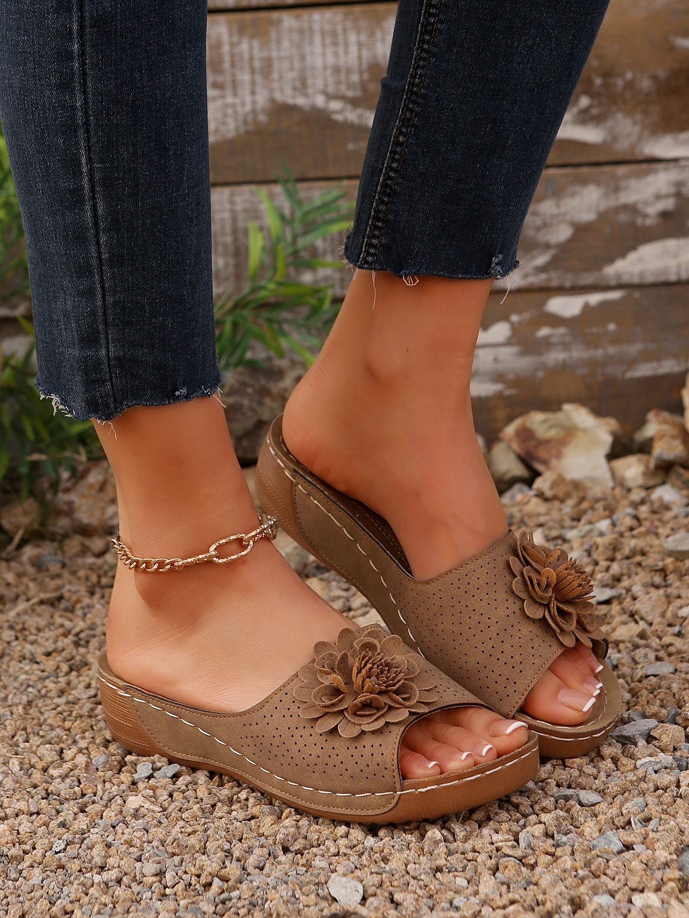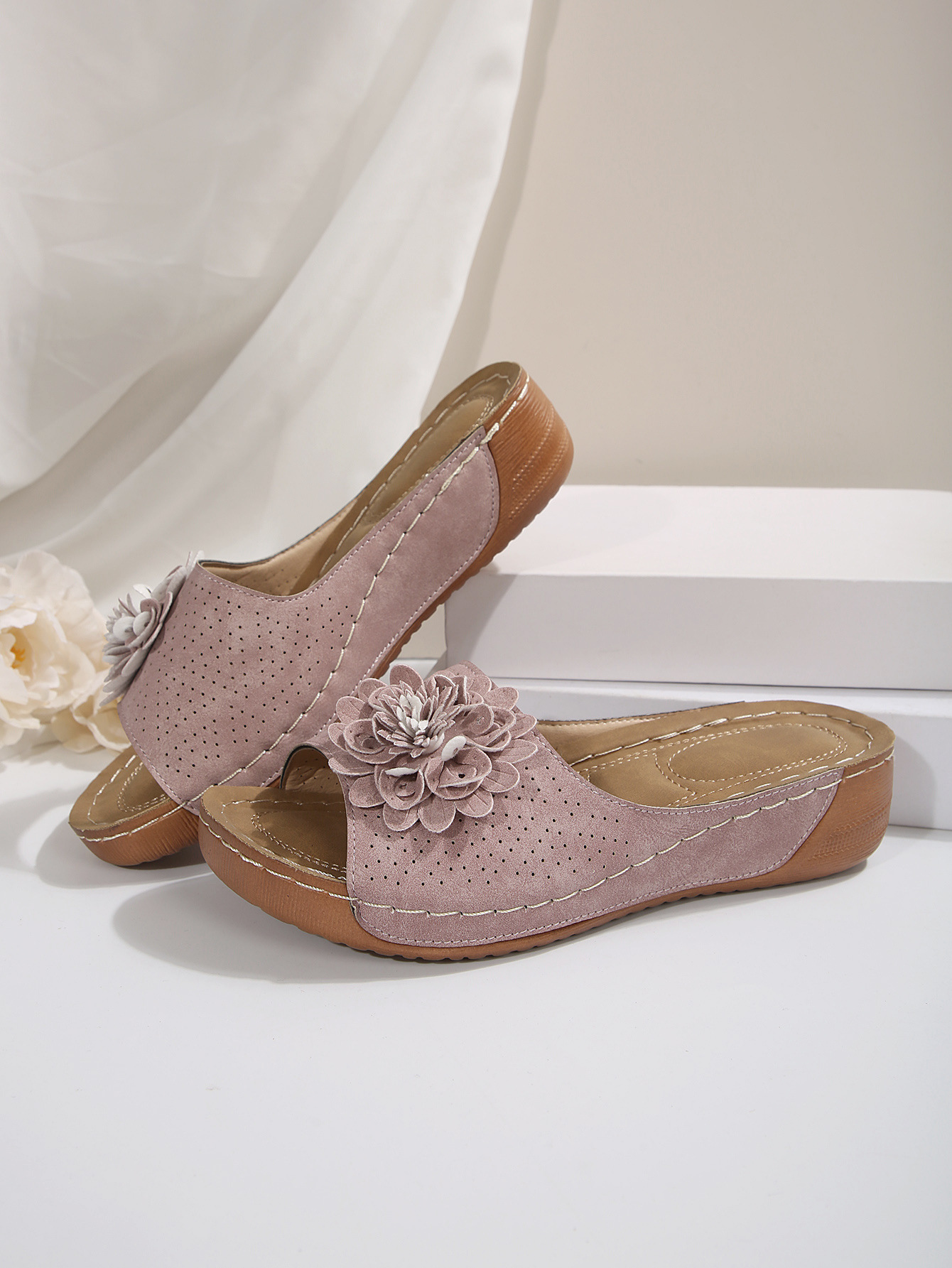대외 무역 플러스 사이즈 여성 신발 2025 봄과 여름 새로운 아마존 국경 하나의 꽃 오픈 토 슬리퍼 여성의 유럽 및 미국 샌들스토어 가기