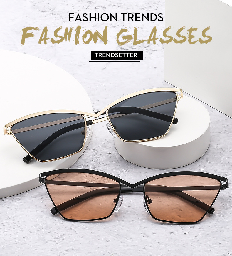 유럽과 미국의 금속 복고풍 고양이 눈 유행 선글라스 Ins 인터넷 연예인 거리 사진 촬영 패션 선 스크린 맞춤형 여성 국경 선글라스
