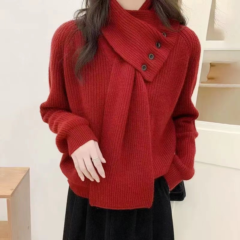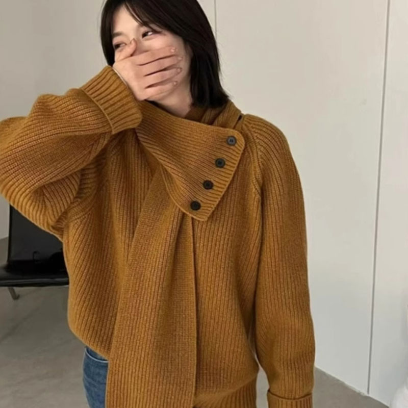 한국 스타일 분리 가능한 스카프 스웨터 여성 겨울 오리지널 디자이너 새로운 스타일 스웨터 슈퍼 니스 탑 트렌디