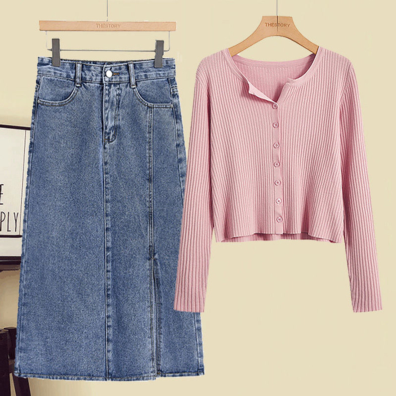 플러스 사이즈 여성 의류 봄 세트 여성 2025 신입 서양식 탑 여성 슬림 데님 스커트 투피스 세트스토어 가기