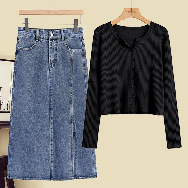 • 블랙 탑 + 데님 스커트 [투피스 세트]