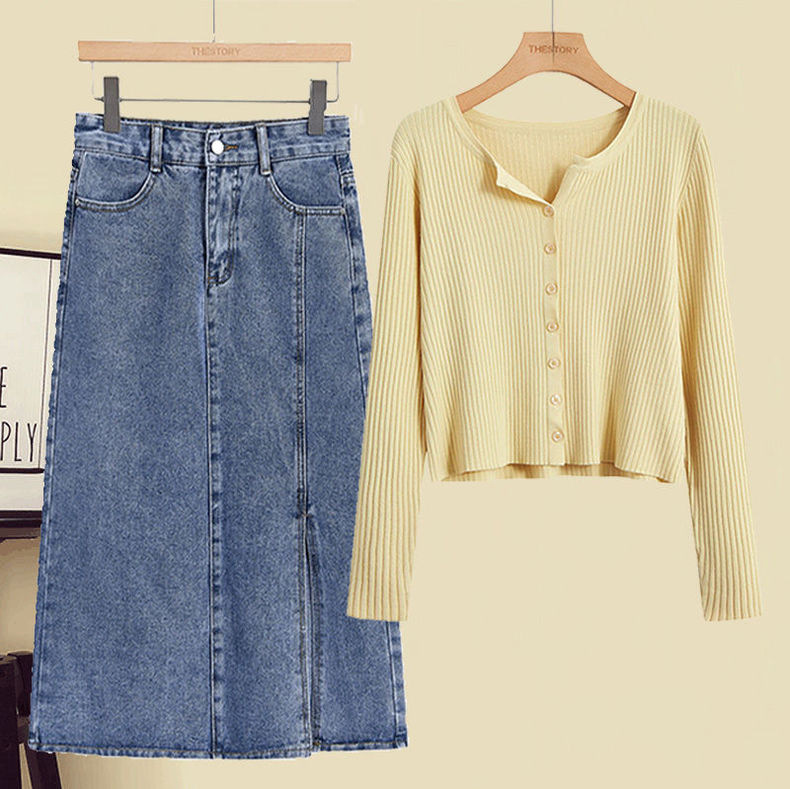 • 옐로우 탑 + 데님 스커트 [투피스 세트]