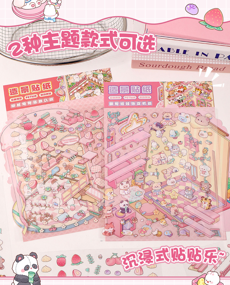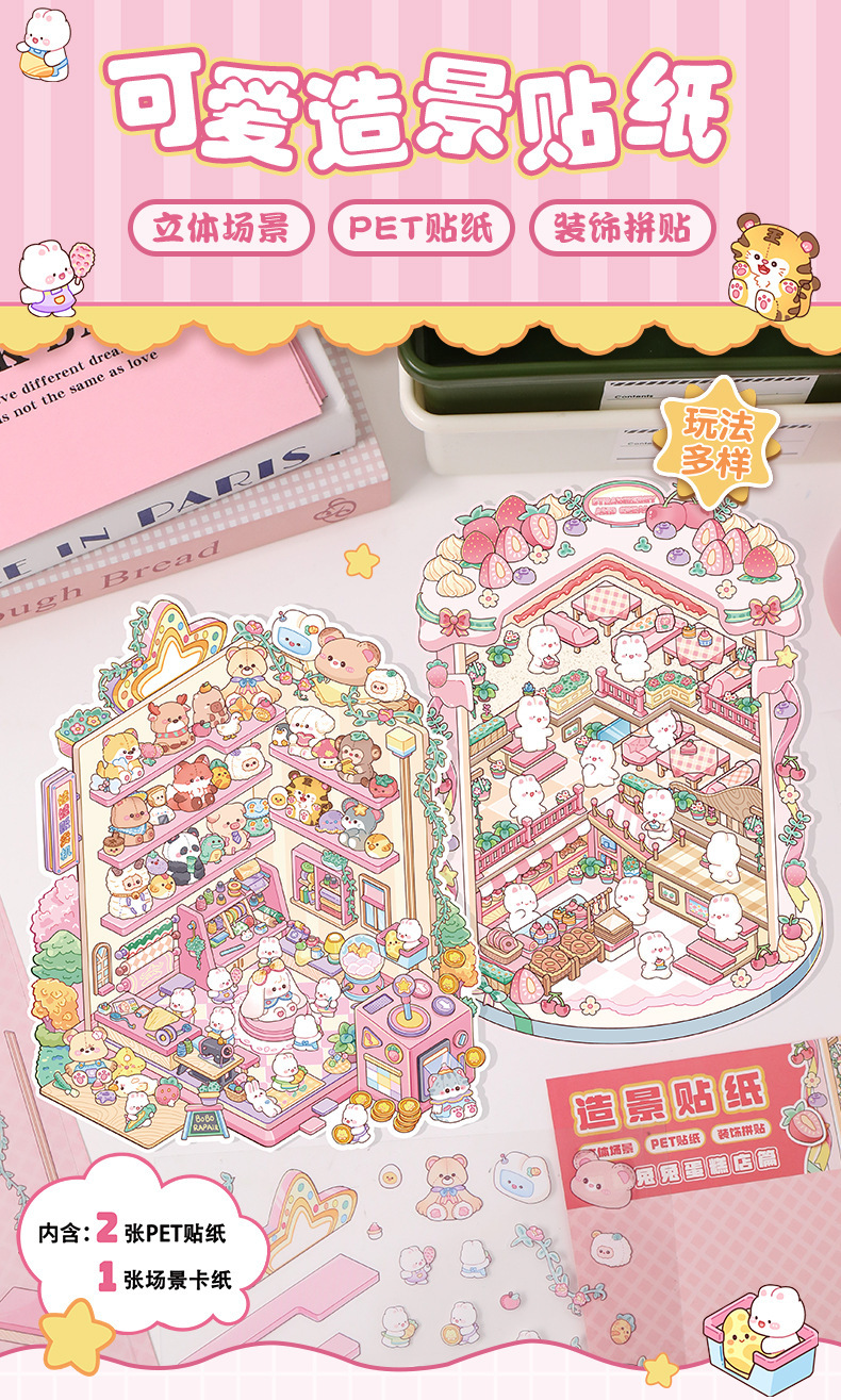 13.0 만화 조경 스티커 3D 미니어처 장면 스티커 조경 콜라주 손 계정 스티커 diy 콜라주스토어 가기