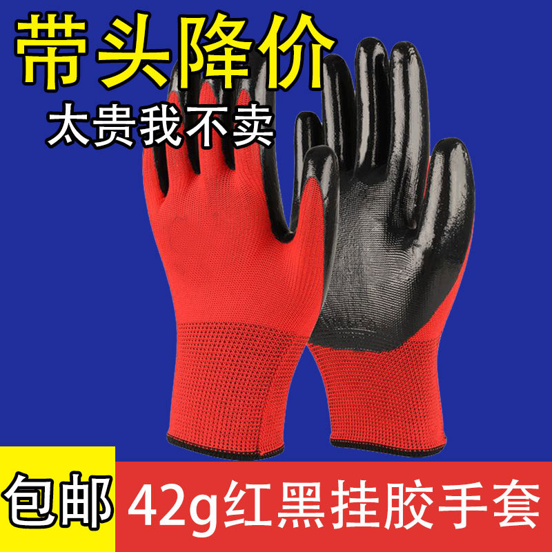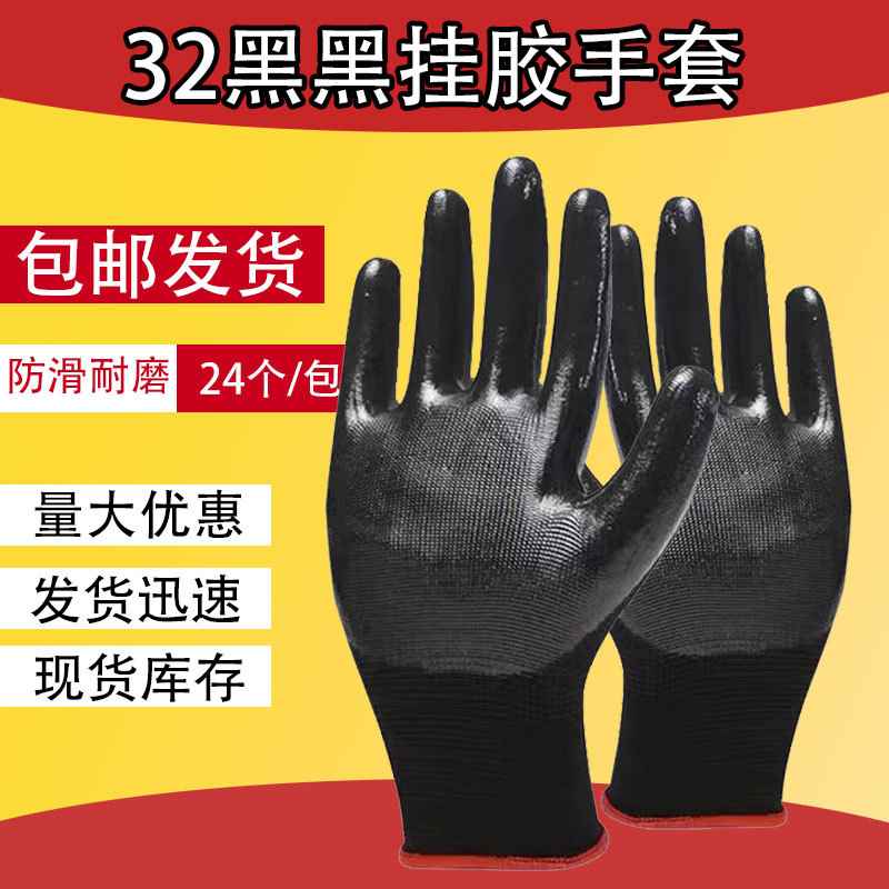 장갑 작업 현장 노동 보호 장갑 여성 작업 내마모성 나일론 블랙 장갑 교수형 접착 성 딩칭 두꺼운 내마모성 무료 배송