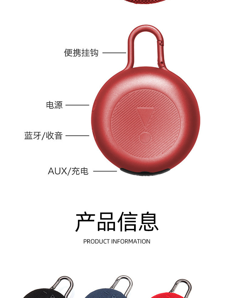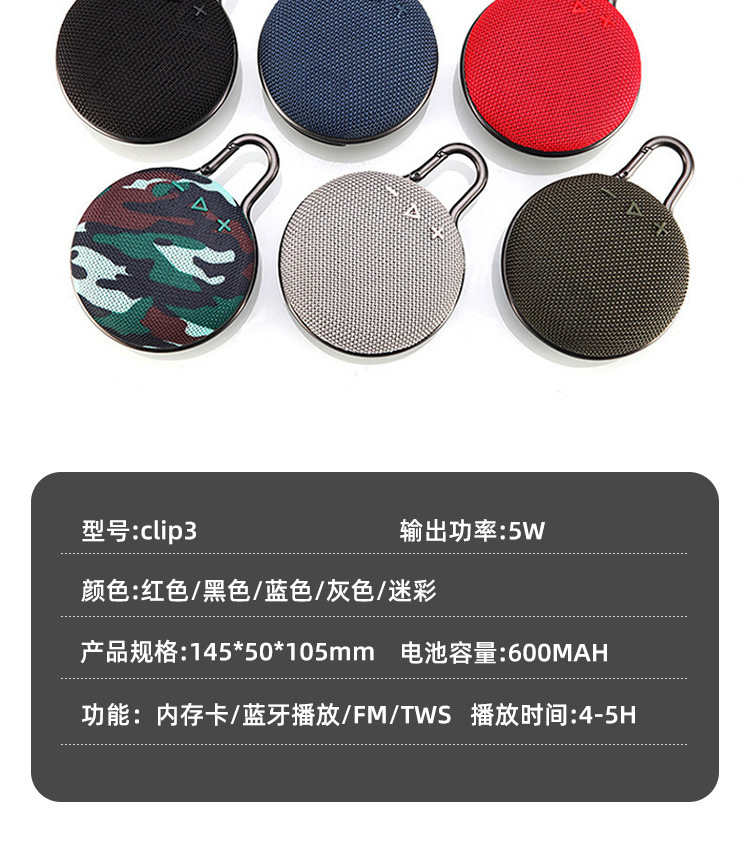CLIP 3 뜨거운 판매 대외 무역 무선 블루투스 스피커 서브 우퍼 뮤직 박스 방수 야외 후크 작은 스피커