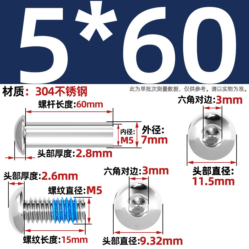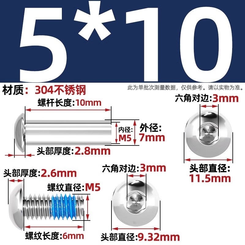 304 스테인레스 스틸 라운드 헤드 육각형 소켓 헤드 잠금 나사 너트 클램프 플레이트 여성 네일 노크 가구 연결 볼트 막대스토어 가기