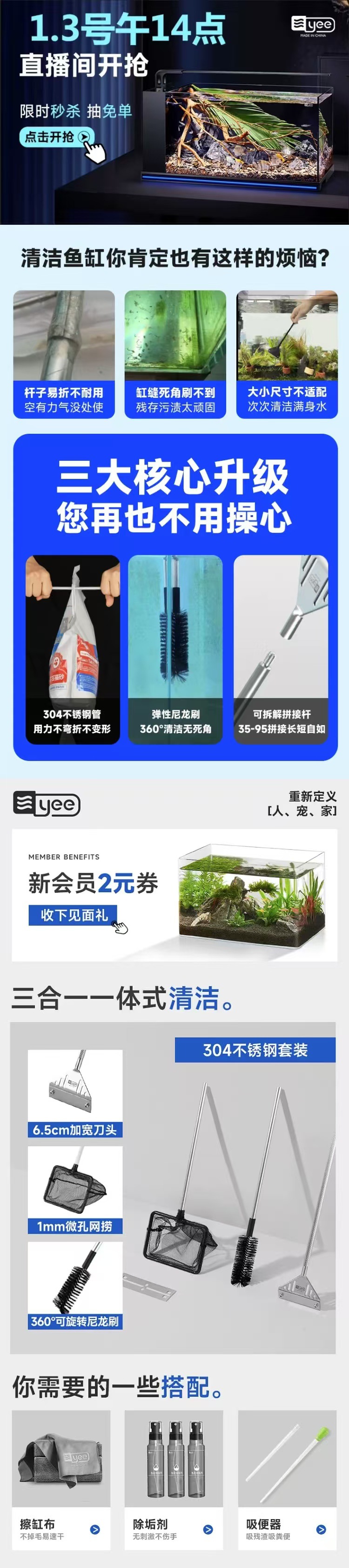 어항 조류 제거기 수초 청소 도구 조류 제거 및 세척 담수 및 해수 겸용 사각지대 없이 청소스토어 가기