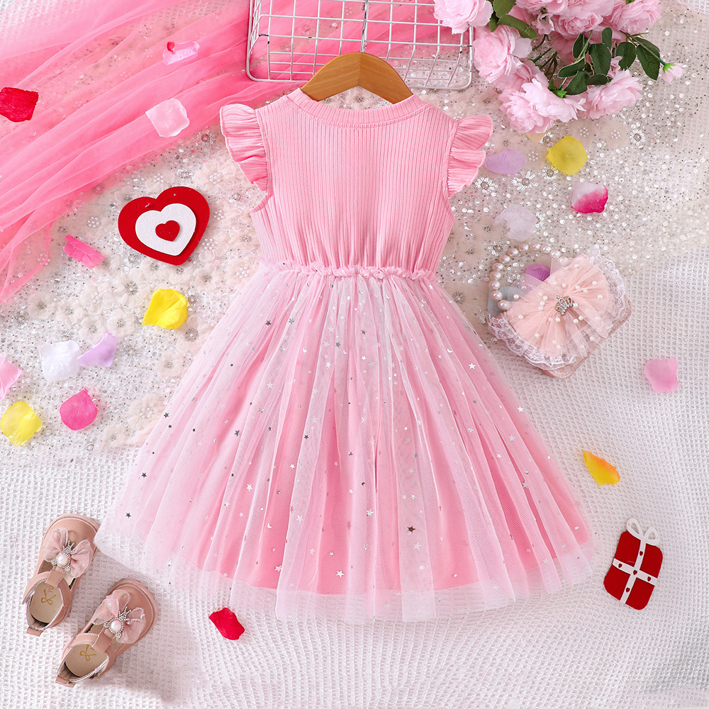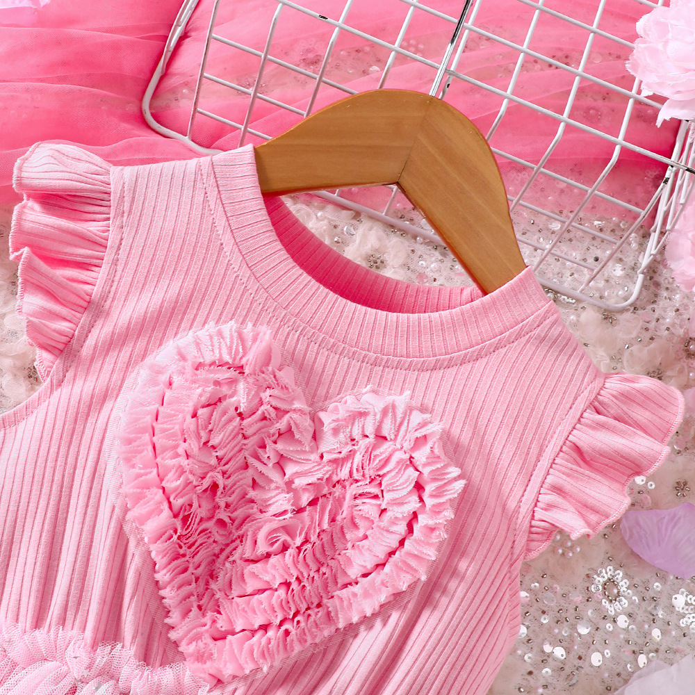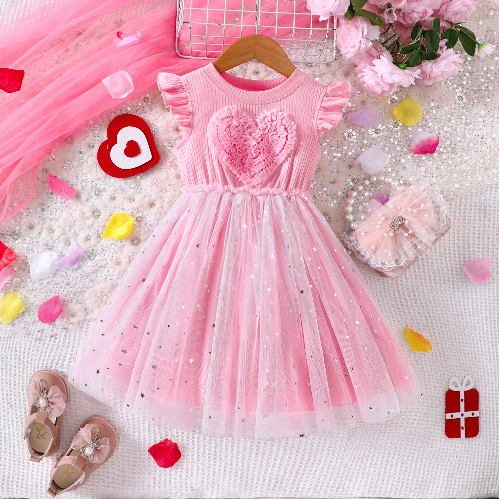 EW 대외 무역 아동복 소형 및 중형 아동 클리어런스 여아 여름 니트 입체 러브 메쉬 드레스 Q1904-C