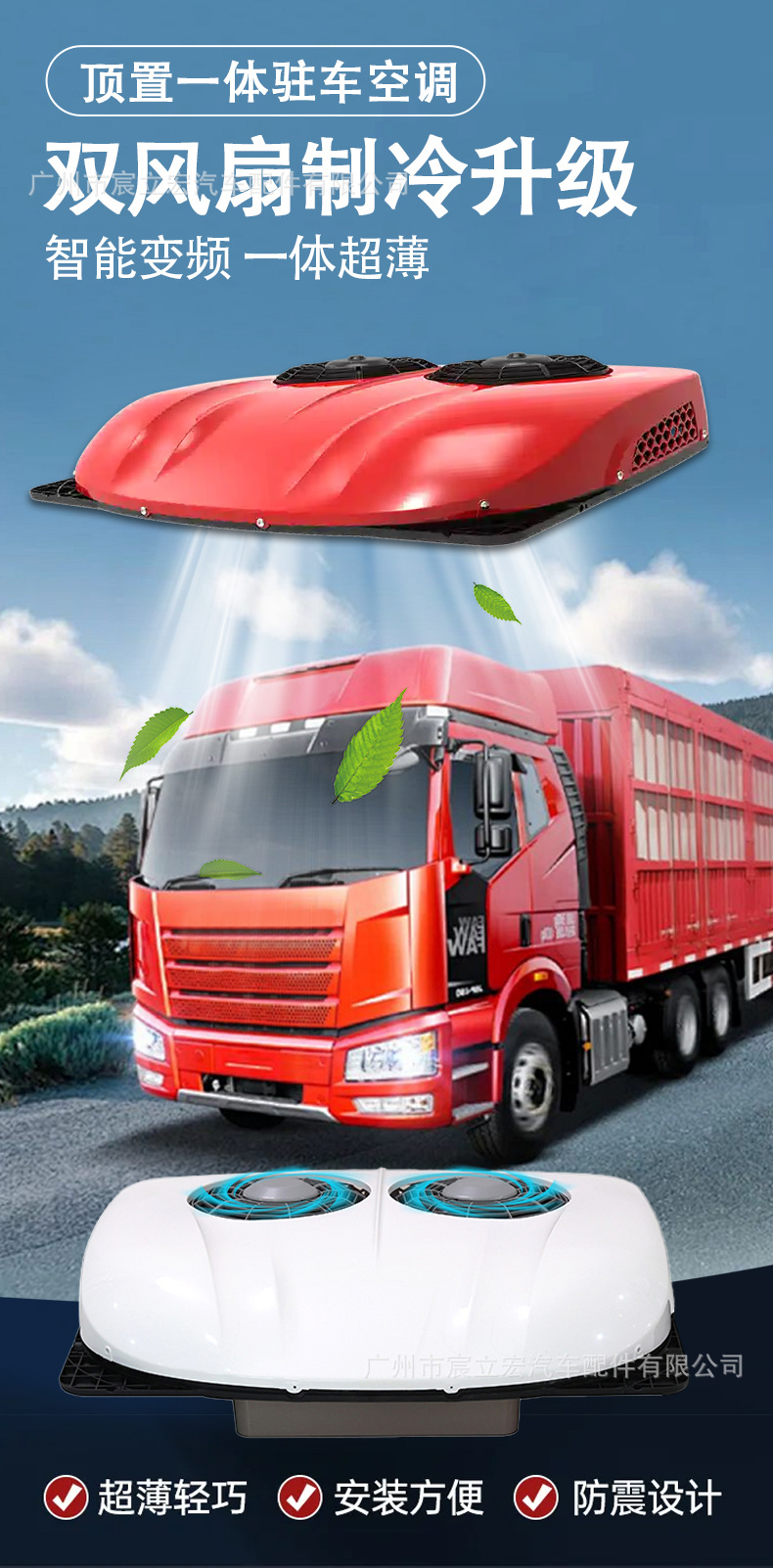 • 12V 레드 듀얼 팬 초박형 고냉각 에어컨 일체형-EAC002.55.12.R