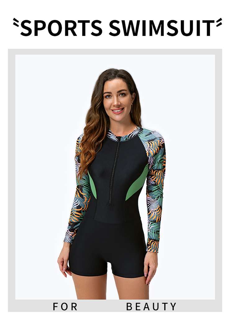 아마존 패션 새로운 컬러 매칭 긴팔 지퍼 원피스 타이트 복서 반바지 스노클링 서핑 세트 여성 수영 세트스토어 가기