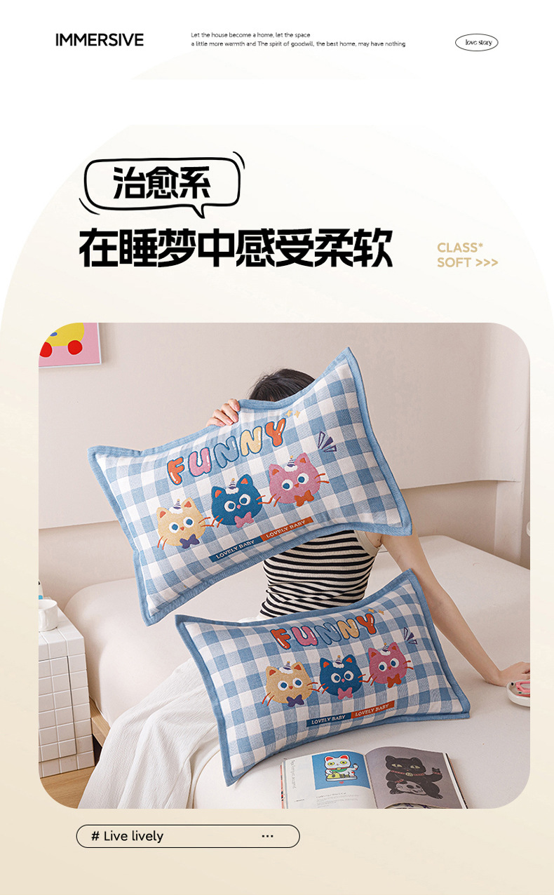 클래스 A 면 4 층 거즈 어린이 베개 케이스 아기 유치원 땀 흡수성 통기성 단일 베갯잇 공장 직접 도매스토어 가기