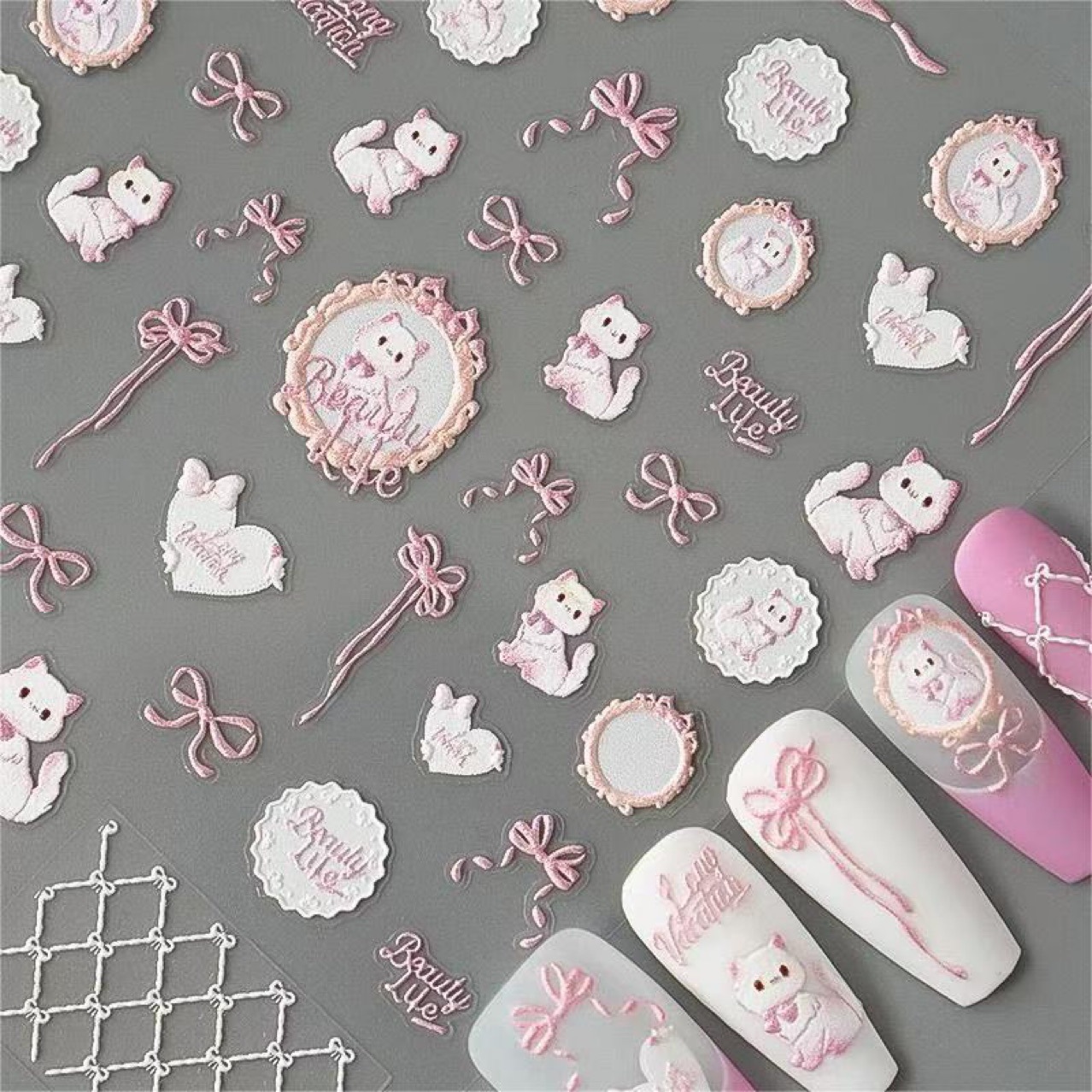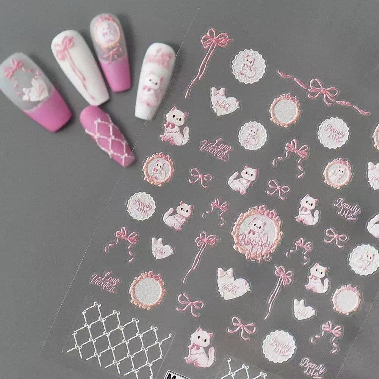 양각 작은 빨간 책 쉘 나비 네일 아트 스티커 앰빌 라이트 오로라 유약 로즈 네일 고급 3 차원