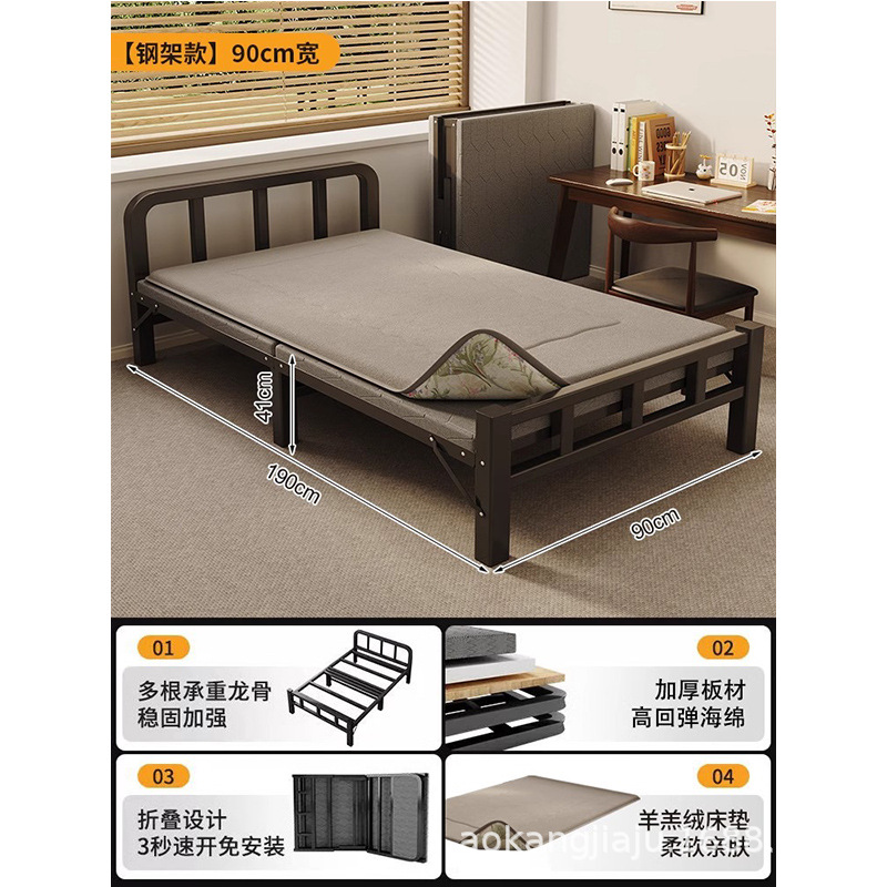 철침대 두껍게 된 학교 기숙사 싱글 철제 선반 침대 점심 휴식 접이식 성인 임대 주택 부지 철제 침대스토어 가기