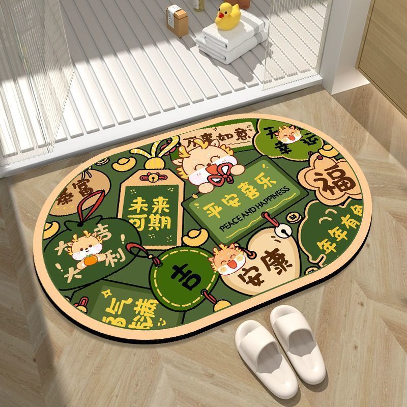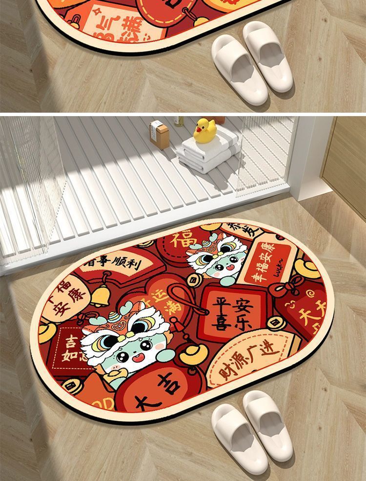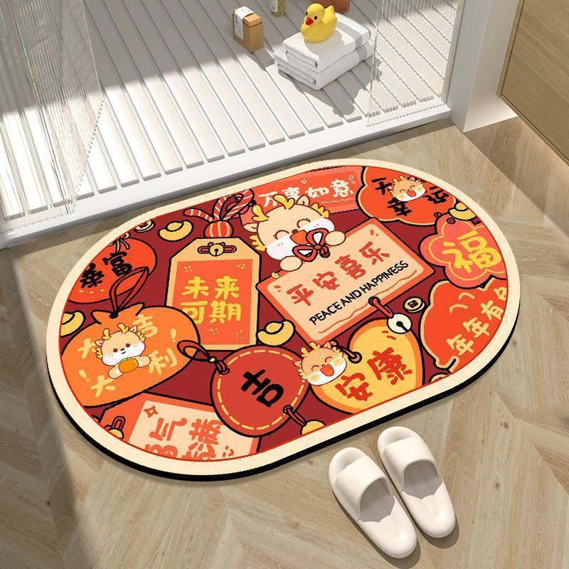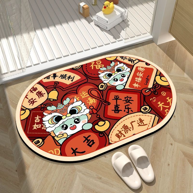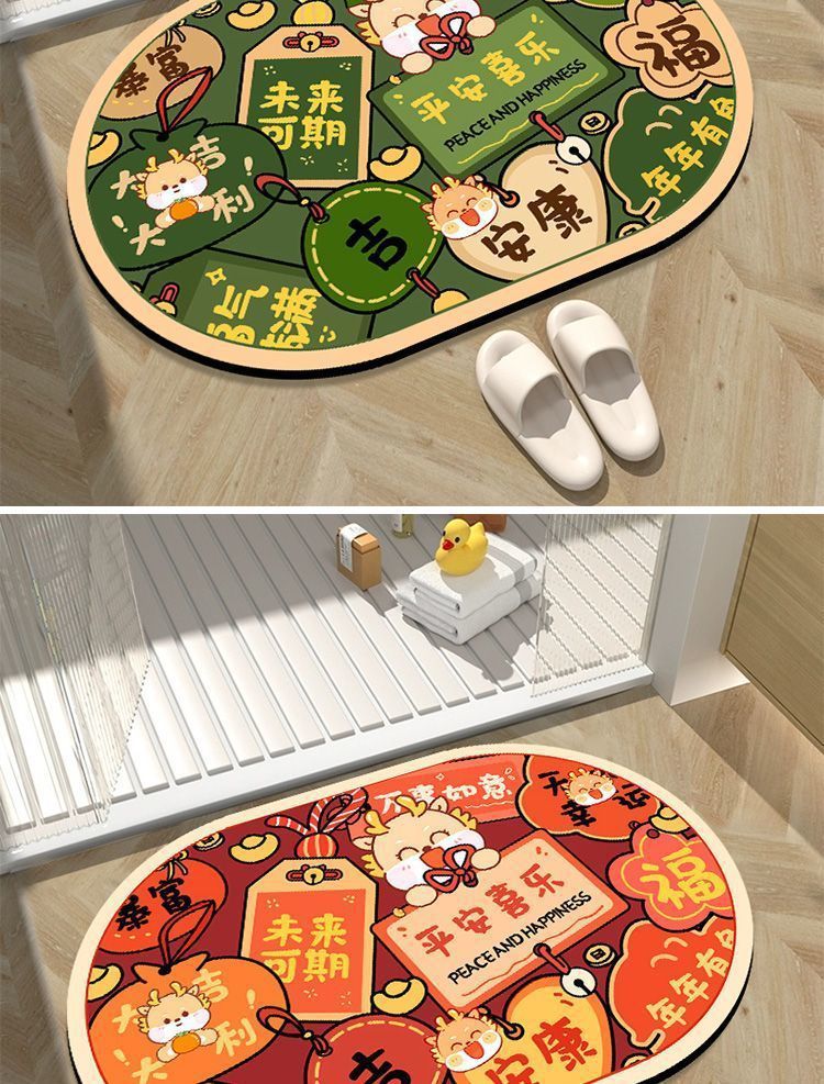 욕실 흡수성 바닥 매트 드래곤 년 2024 년 새해 Diatom 진흙 미끄럼 방지 빠른 건조 발 매트 가정용 변기 발 매트