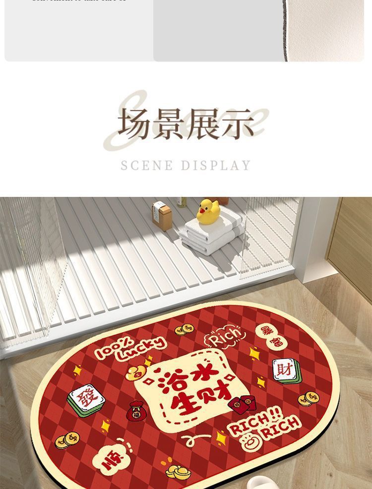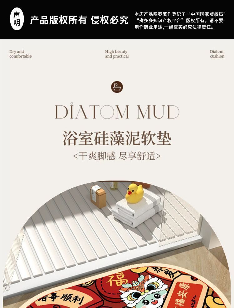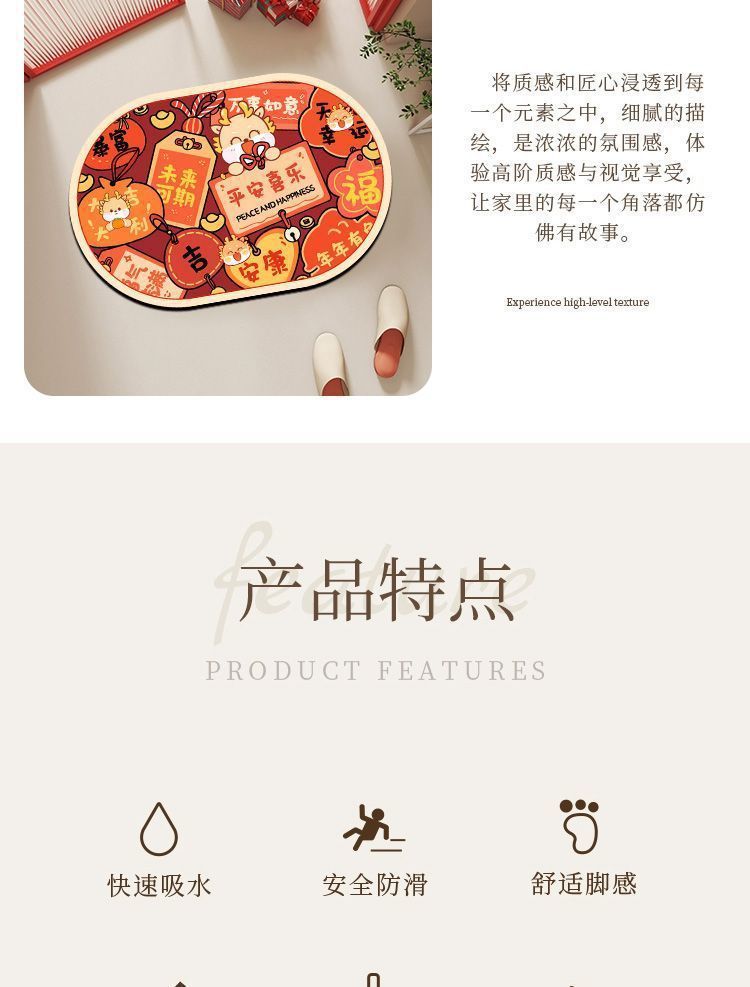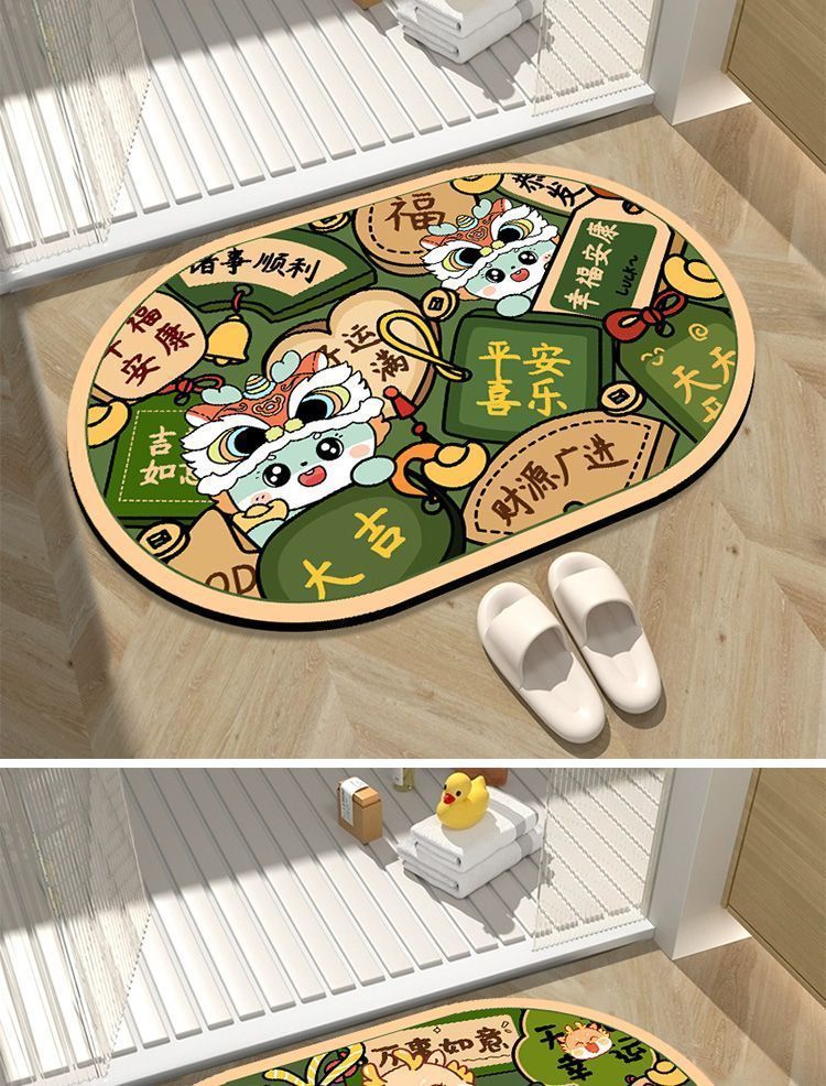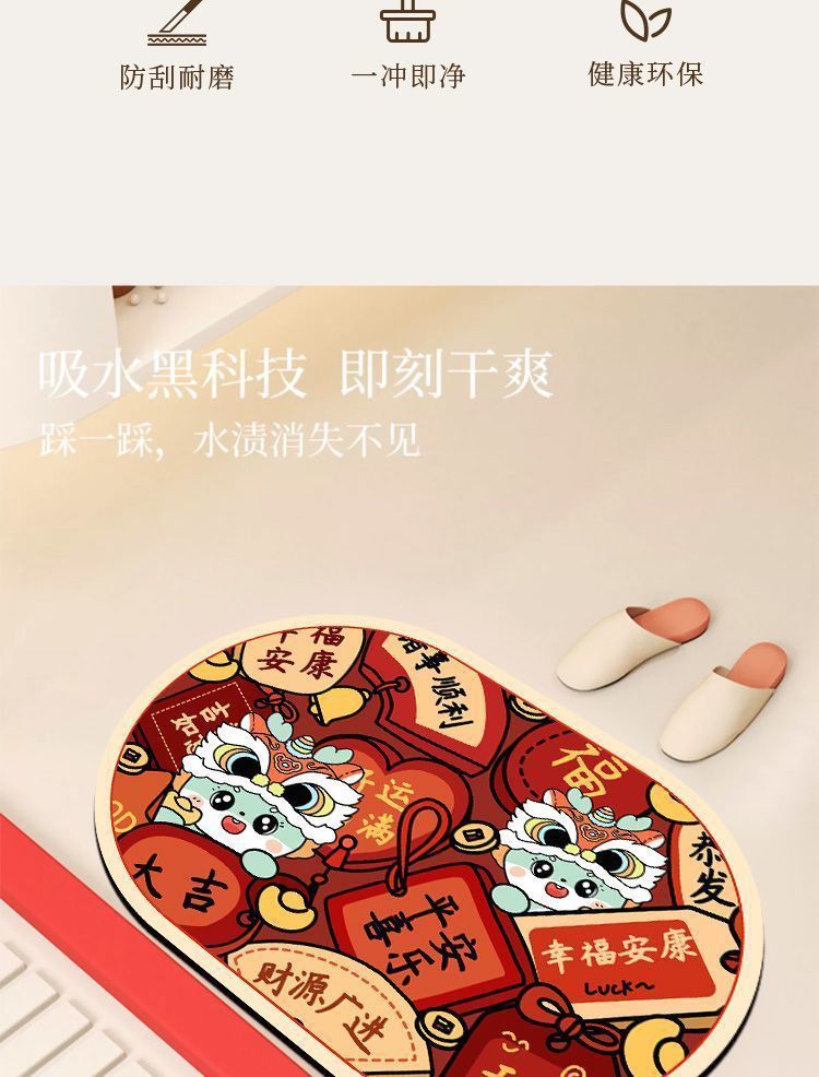 욕실 흡수성 바닥 매트 드래곤 년 2024 년 새해 Diatom 진흙 미끄럼 방지 빠른 건조 발 매트 가정용 변기 발 매트
