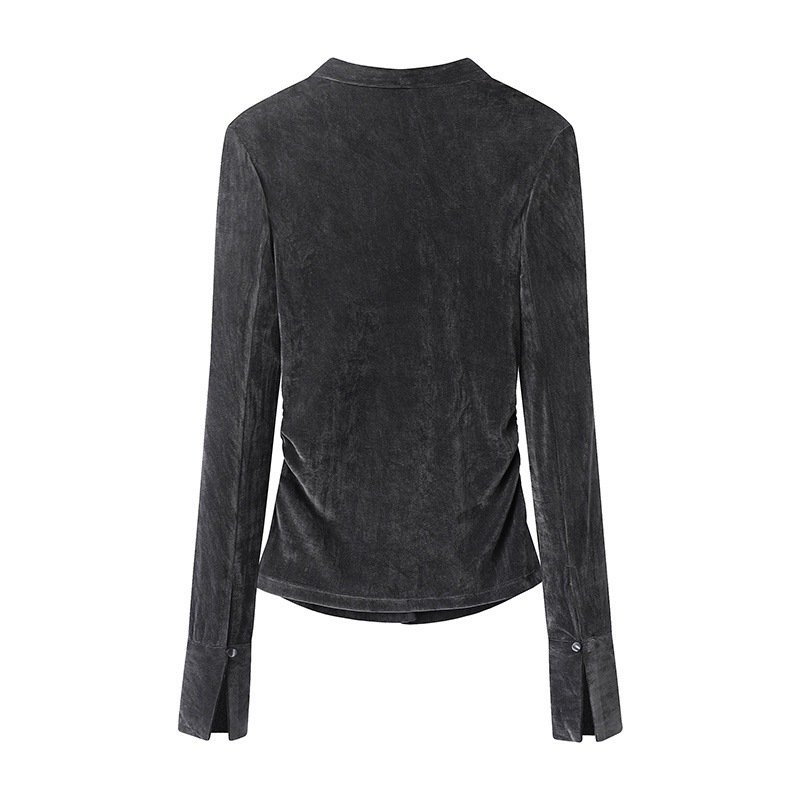 2025 봄 새로운 유행 올 매치 슬림 핏 V 넥 싱글 브레스트 백킹 셔츠 플로팅 탑 여성용 50126011스토어 가기