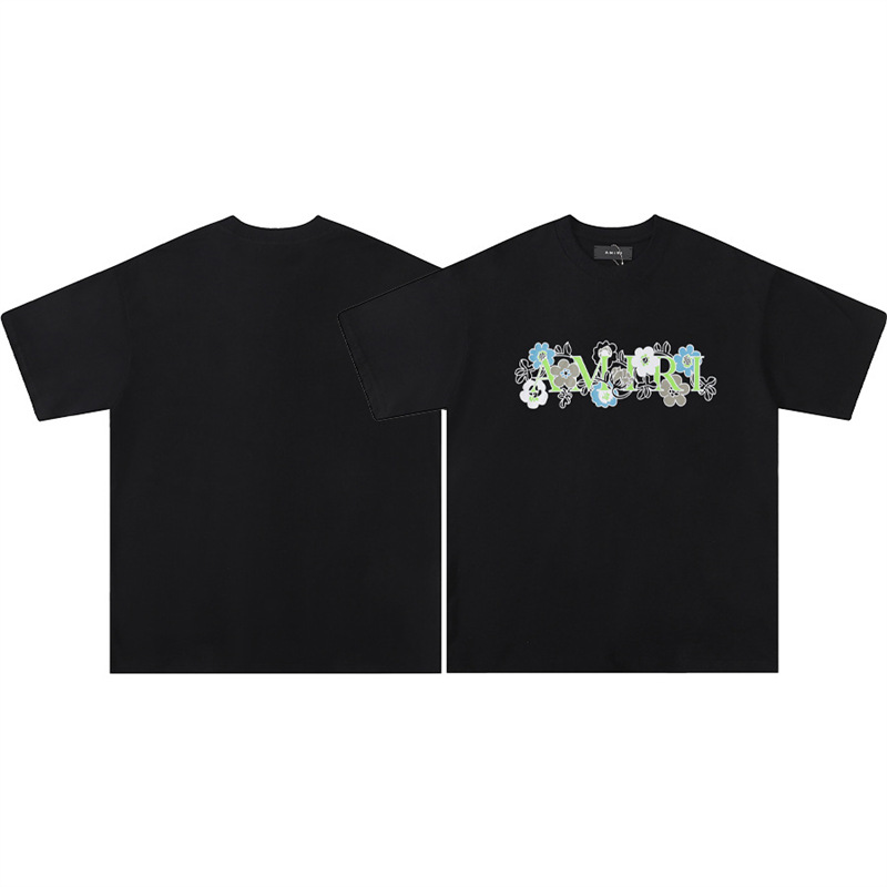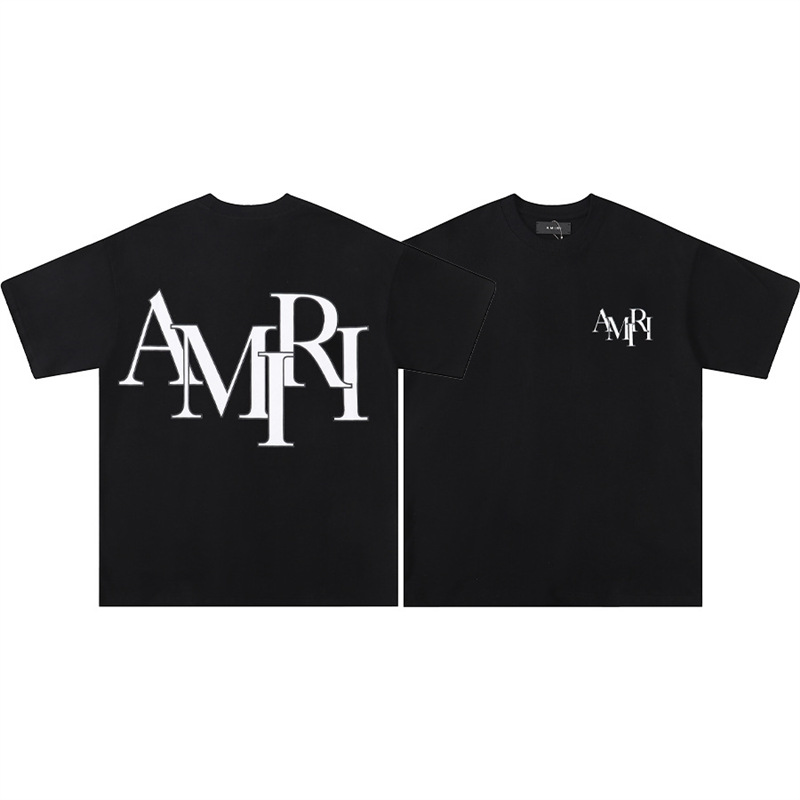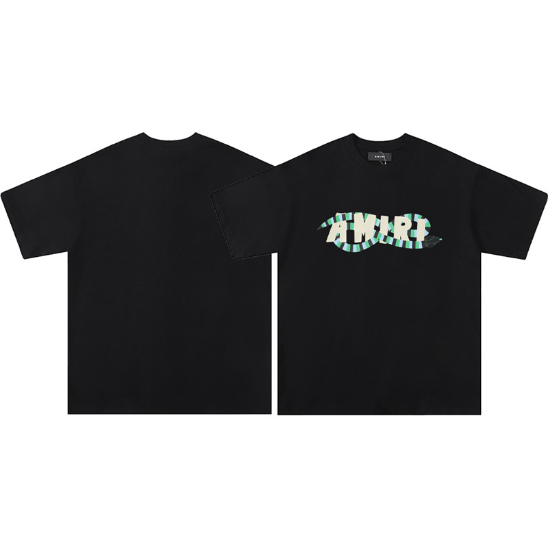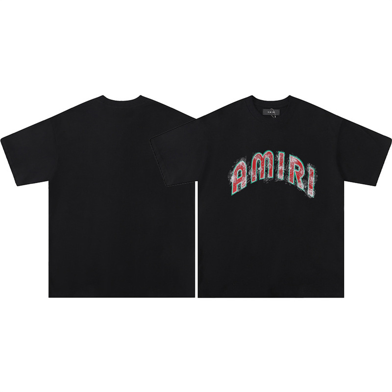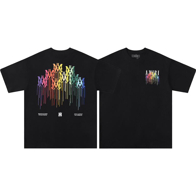 트렌디 한 반팔 버전 편지 크루 넥 하이 T 국경 AMIRI 스플래시 잉크 컬렉션 셔츠 반팔 남성 유체 여름스토어 가기