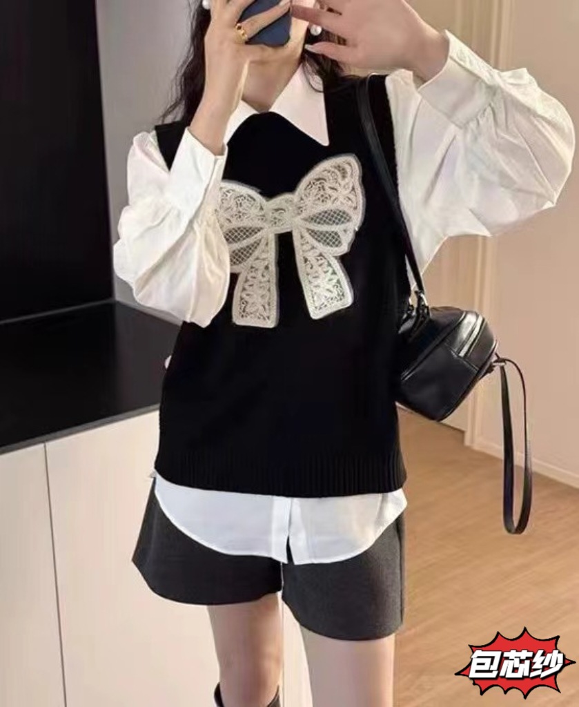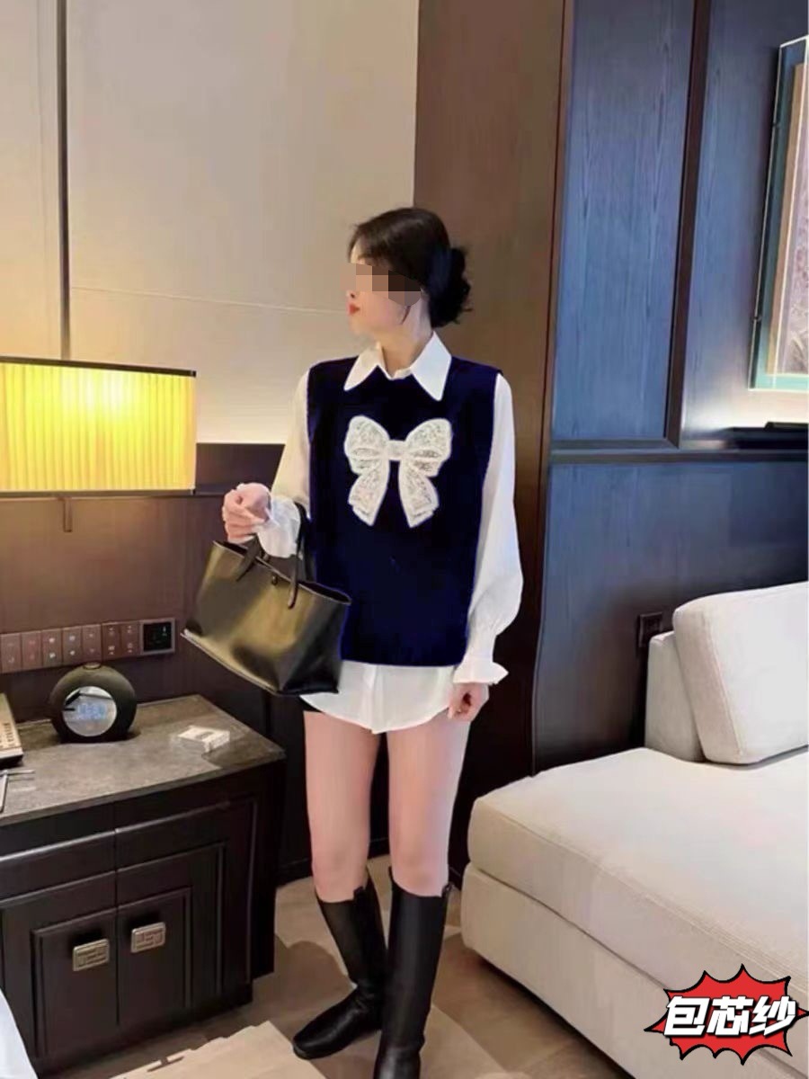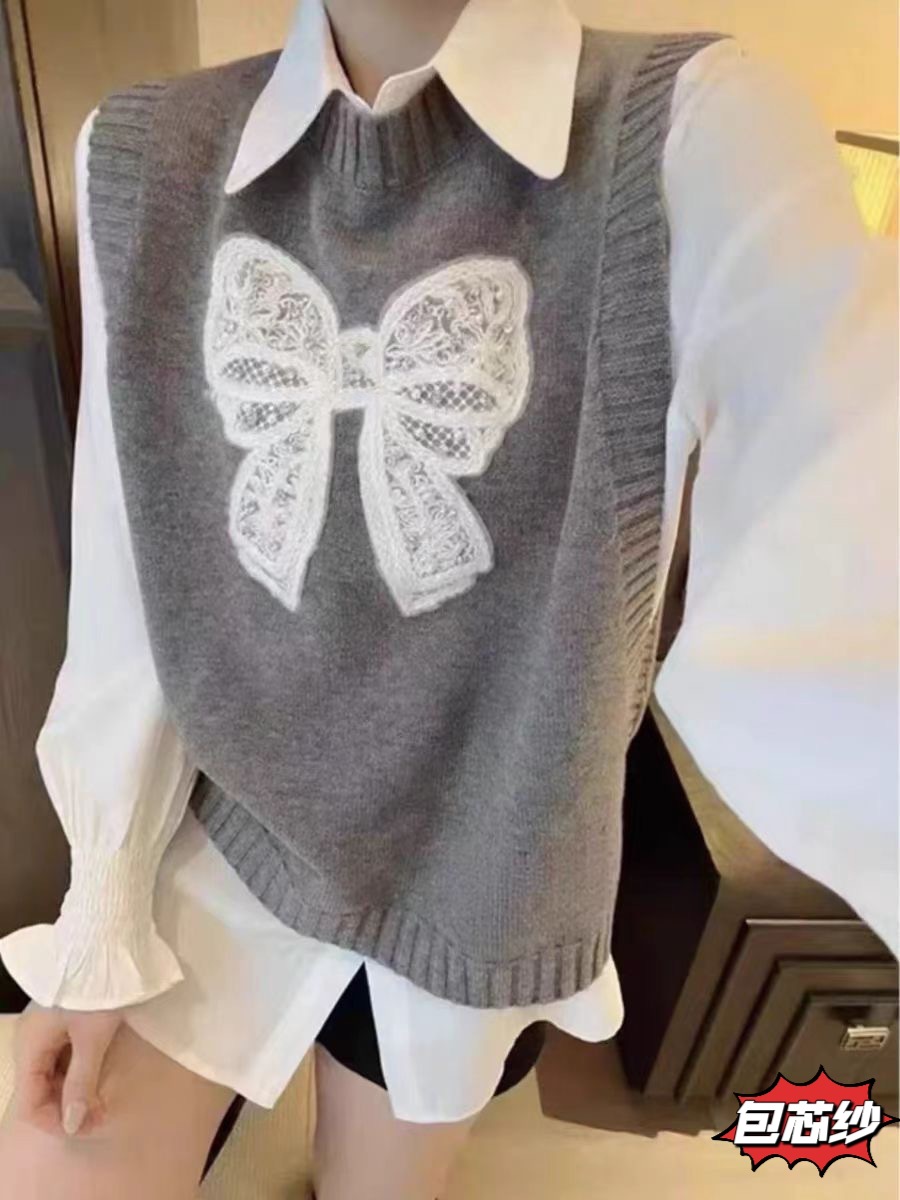 2025 귀여운 나이를 줄이는 니트 민소매 스웨터 조끼 여자 활 자수 새로운 올 매치 내복스토어 가기