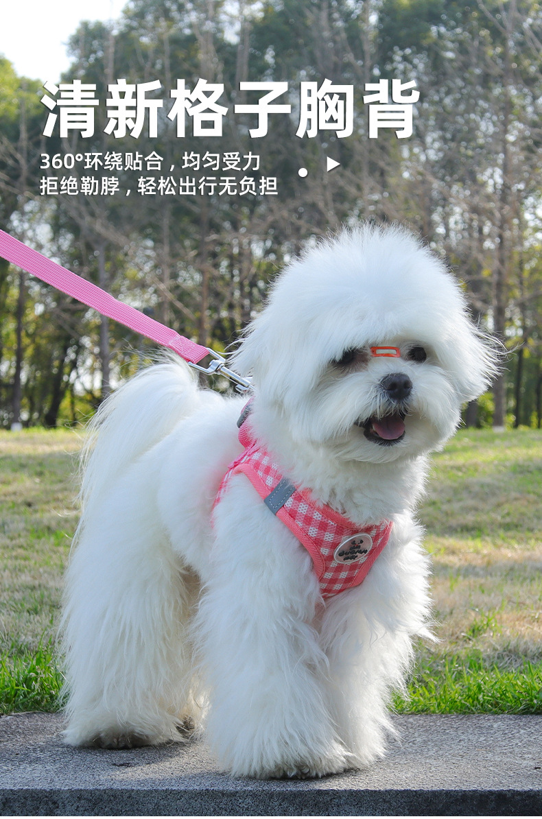 국경 간 개 가죽끈, 중소형견 하네스, 개 산책용 가죽끈, 반사 애완견 강아지 테디 비숑 하네스