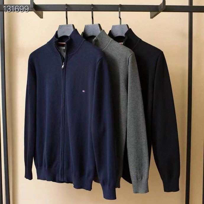 가을과 겨울 토미 토미 남자 캐주얼 라이트 비즈니스 카디건 스웨터 풀 Zip 재킷 자수 니트 카디건스토어 가기