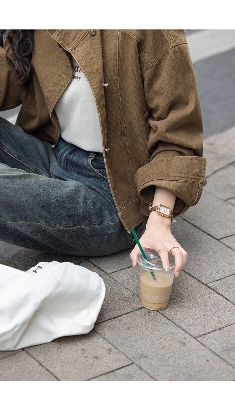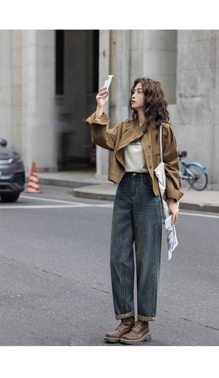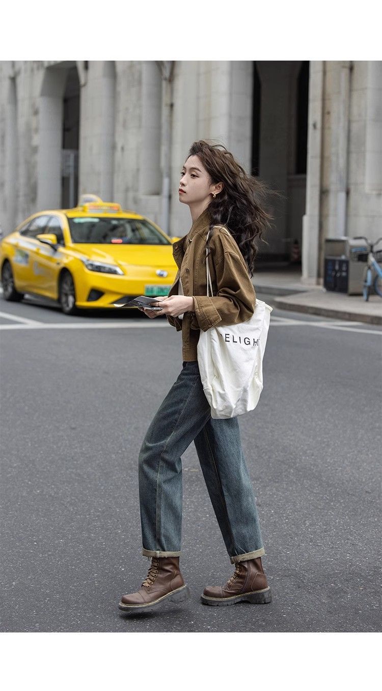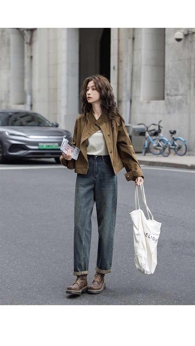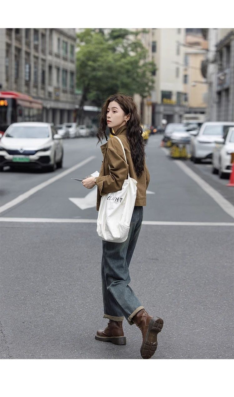 한국식 레트로 툴링 수직 칼라 재킷 코트 여성의 가을 새로운 오토바이 스타일 느슨한 캐주얼 짧은 자켓 탑