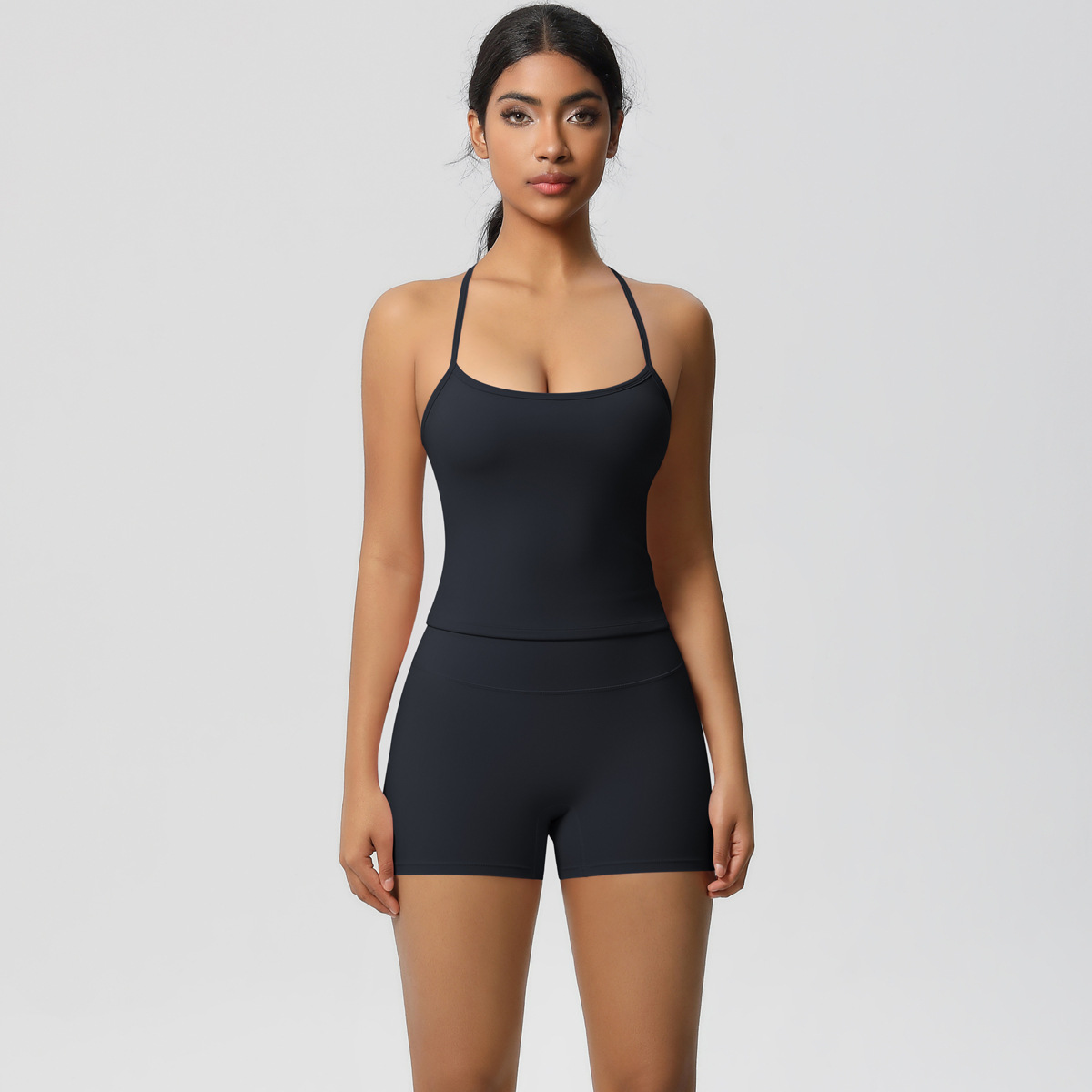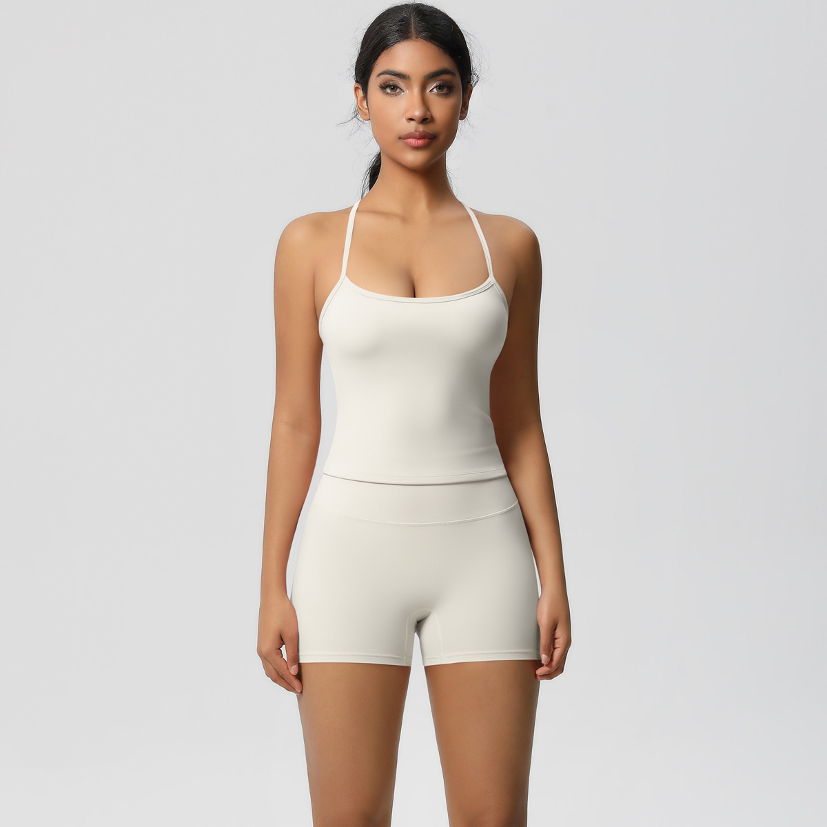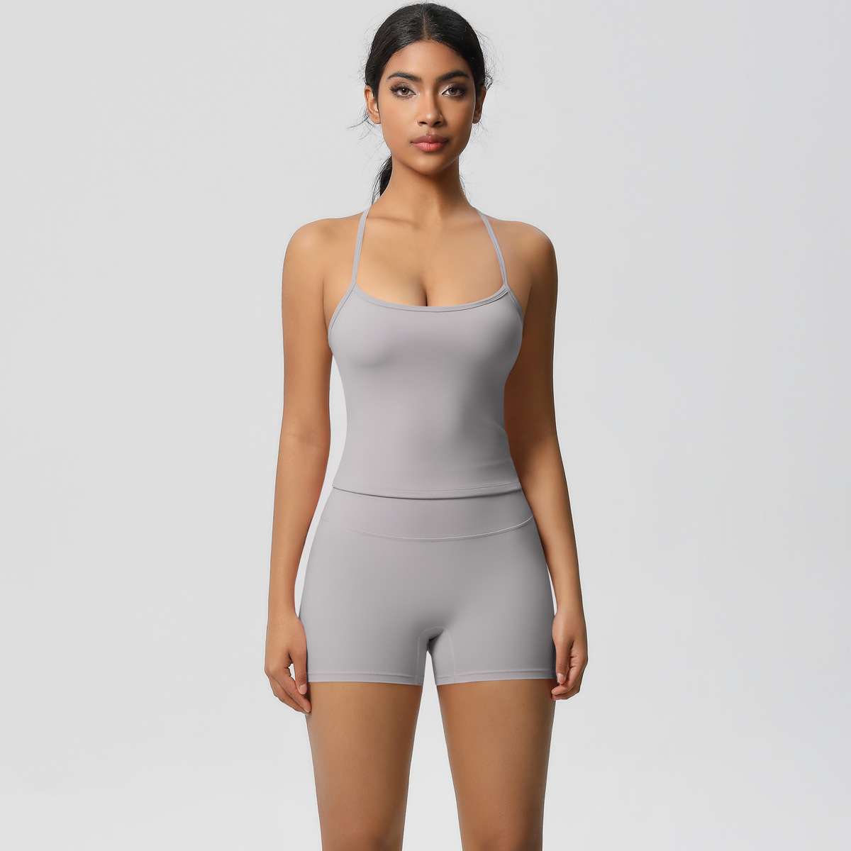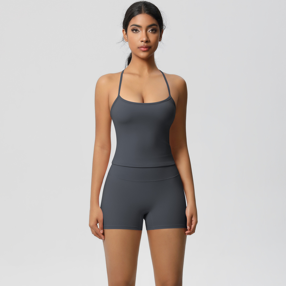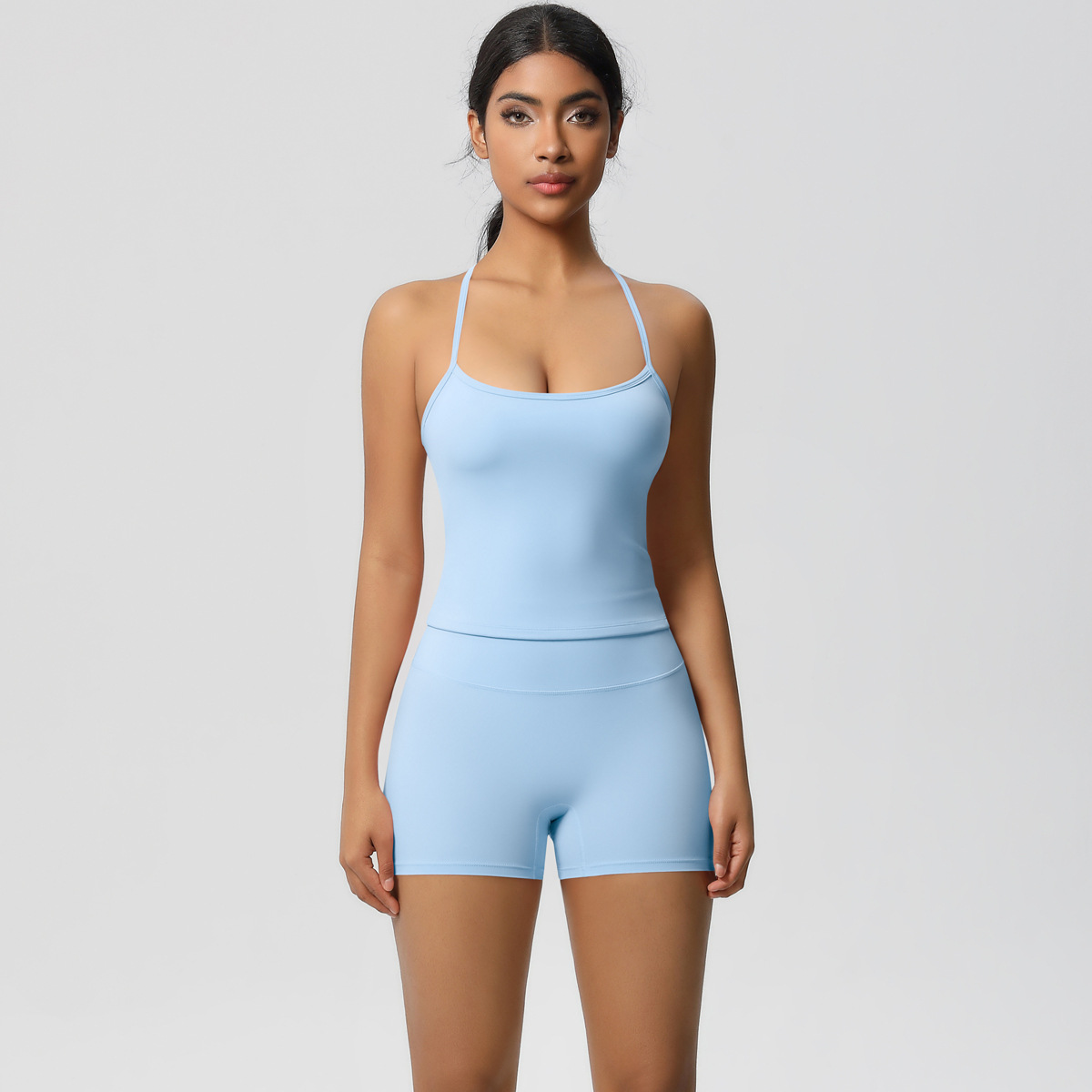 크로스-국경 새로운 솔리드 컬러 슬링 뷰티 백 스포츠 브라 세트 높은 허리 엉덩이 리프팅 달리기 피트니스 요가 옷 세트 여성