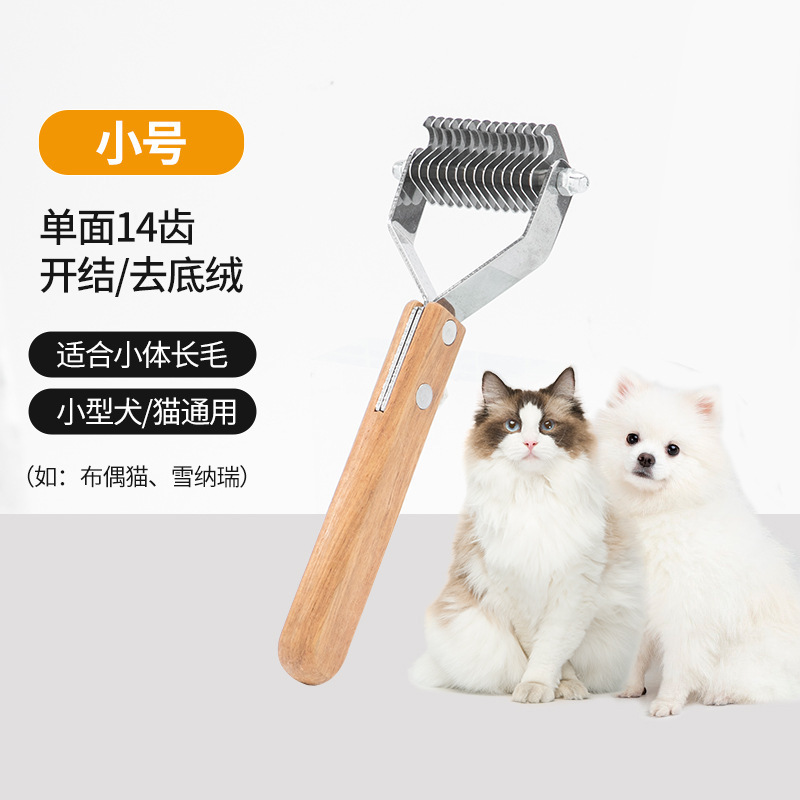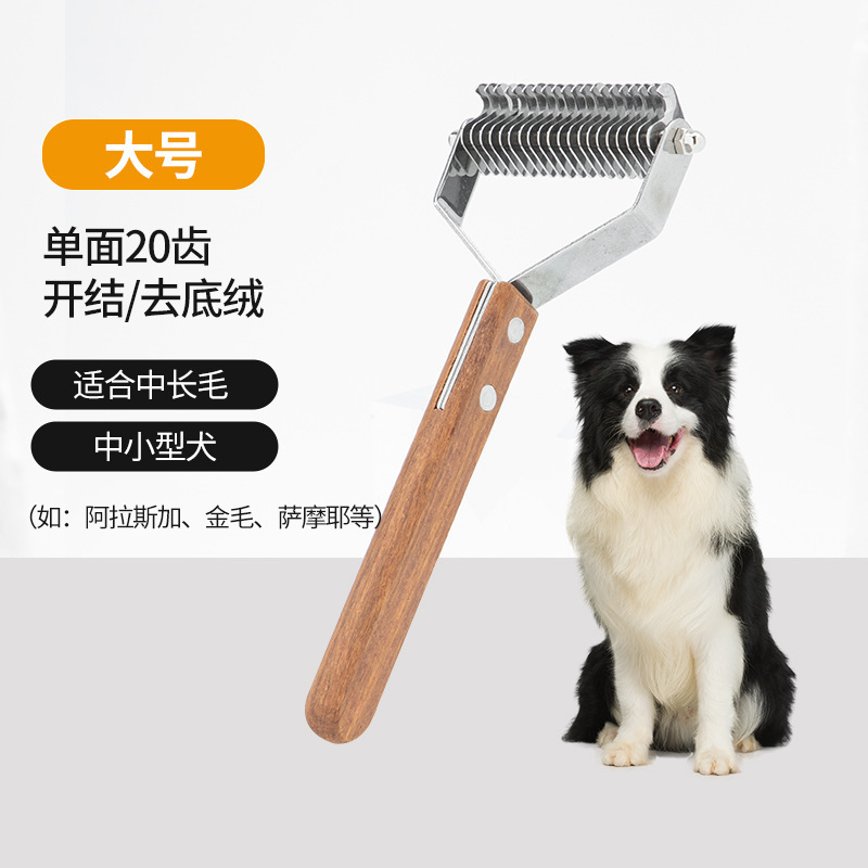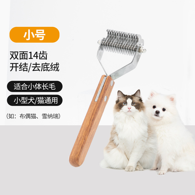 아마존 국경 간 애완 동물 매듭 빗 나무 손잡이 스테인레스 스틸 더블 헤드 개 매듭 칼 고양이 머리 제거 빗스토어 가기
