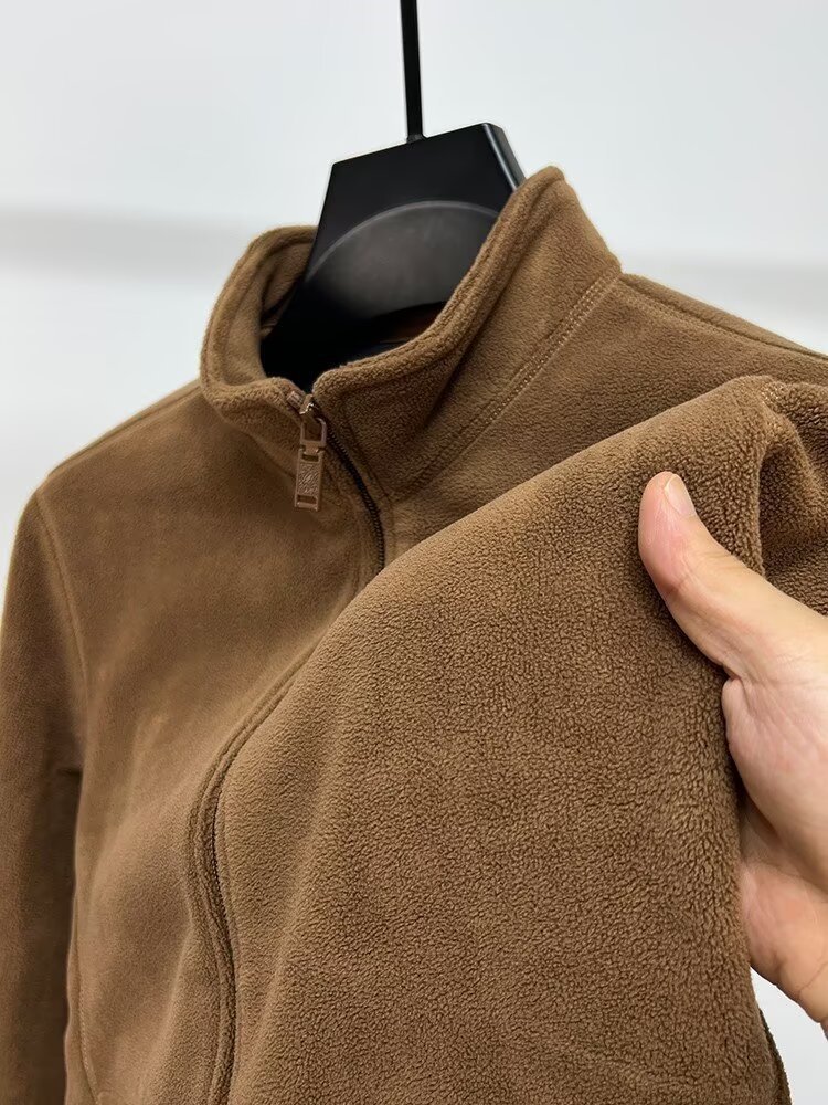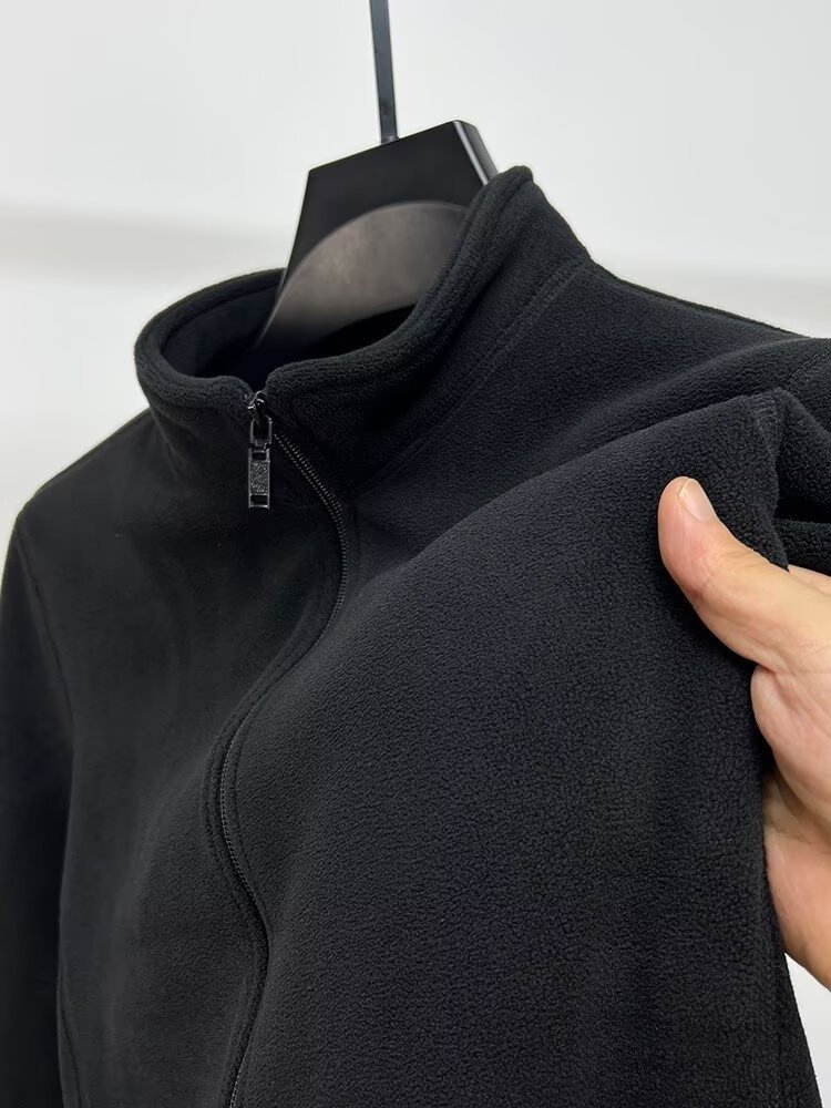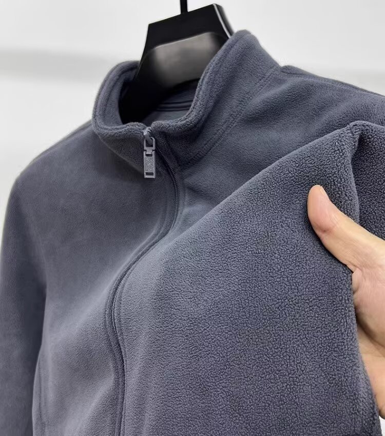 아오 곡물 양털 스웨터 남자 수직 칼라 지퍼 카디건 재킷 가을과 겨울 남자 두꺼운 따뜻한 폴라 양털 솔리드 컬러 재킷