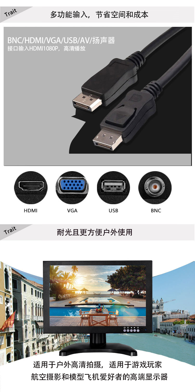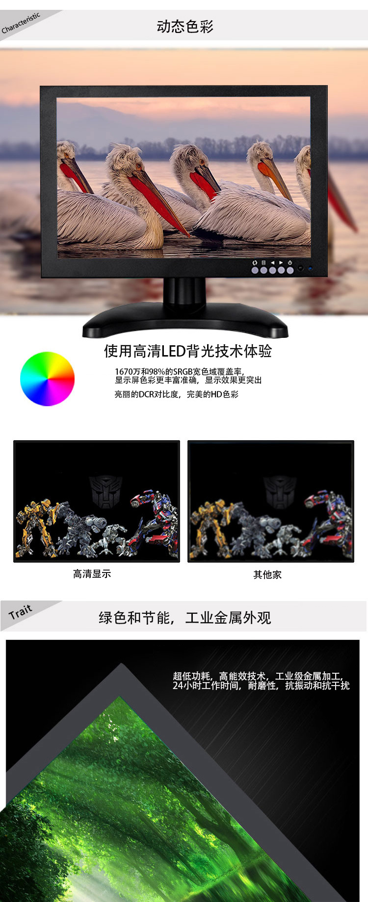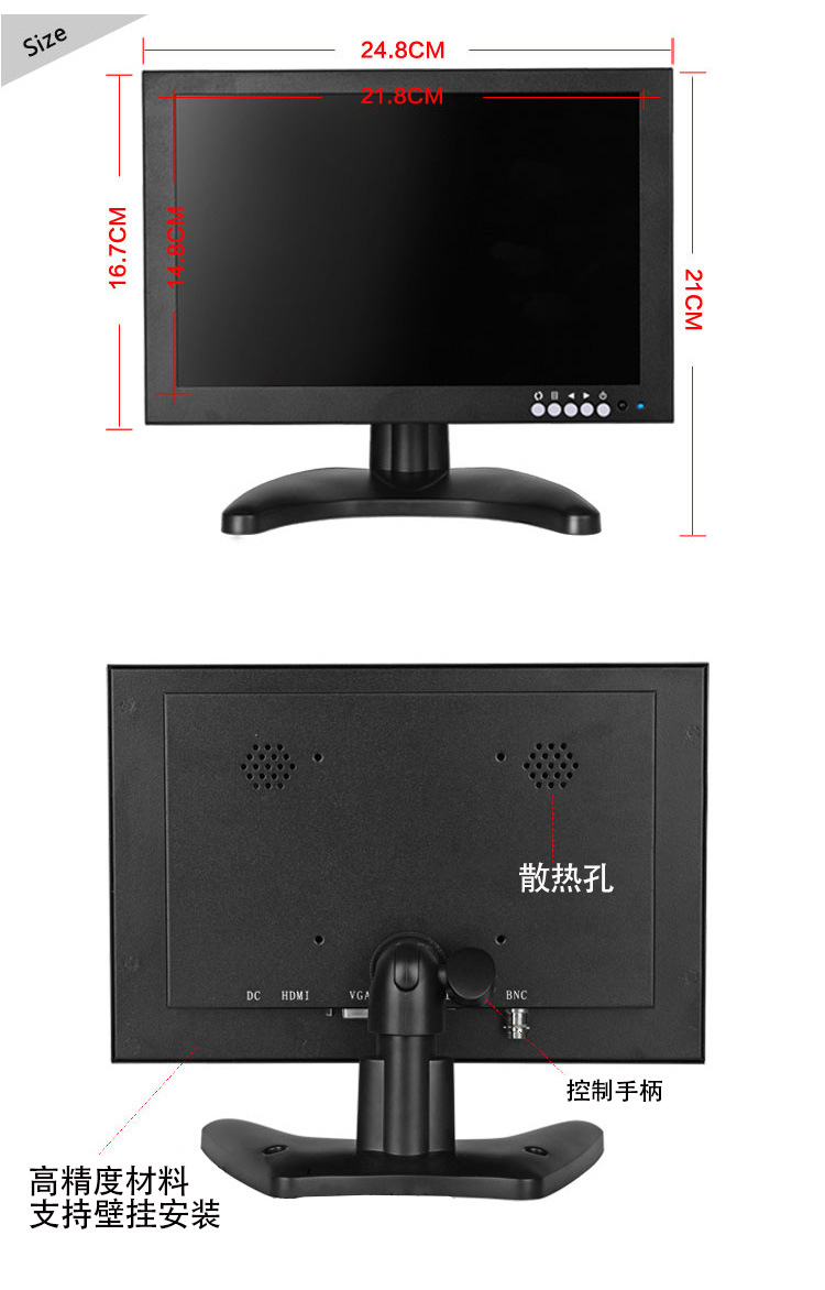 10.1 인치 HD 디스플레이 1920*1080 산업용 금속 케이스 보안 모니터 자동차 모니터